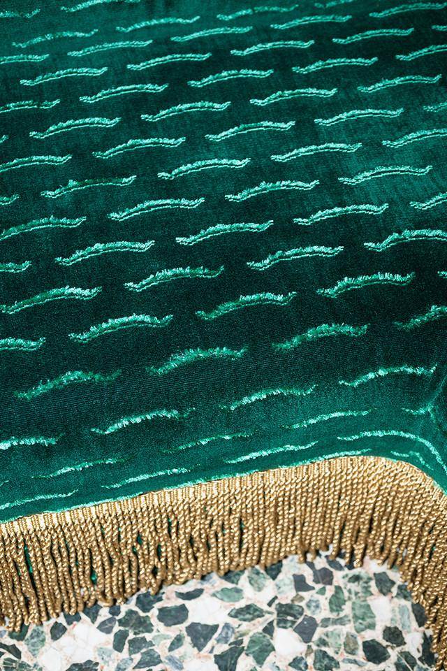 Samt mit Jacquard-Verarbeitung als Hommage an die Optik und die Haptik eines Tigerfells. Ein Stoff, der mit leuchtenden Garnen versehen ist, die an die Lichtreflexe des Dschungels erinnern und so seine Schönheit betonen. Ideal für Sitzmöbel, die mittelmäßig oder intensiv genutzt werden.