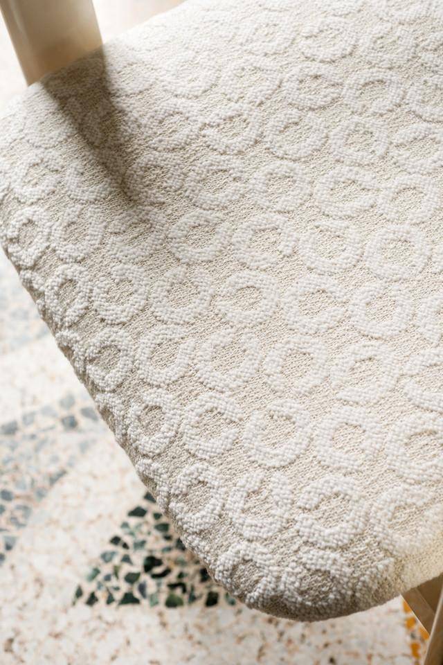 Mit Olong präsentiert DEDAR Milano einen exklusiven Jacquard-Stoff, der durch seine eleganten, gewebten Kreisformen und seine besonders edle Haptik überzeugt. Das Zusammenspiel aus hochwertigen Materialien – Acryl, Schurwolle, Viskose, Polyester, Baumwolle und Leinen – macht diesen Stoff zu einem echten Highlight für anspruchsvolle Wohn- oder Objektkonzepte.