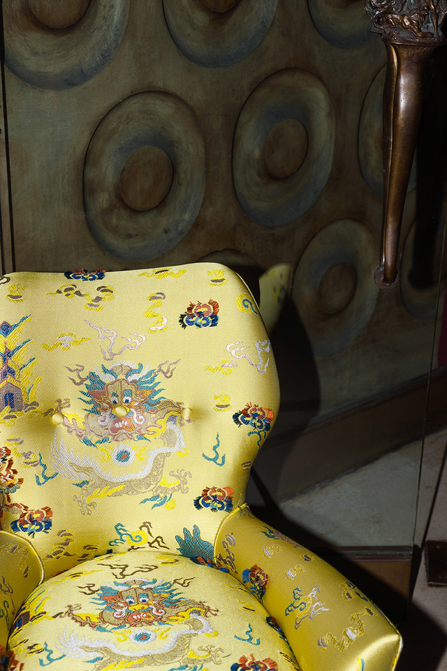 Lustige Drachen und bunte Fransen beleben diesen exquisiten, garngefärbten Jacquard und erinnern an die traditionellen, japanischen Kimonos. Der japanische Einfluss verliert seine strengen Züge und führt uns in eine verspielte Welt eines, mit bunten Fransen besetzten Stoffes, in der ein, mit seinem Schlangenkörper und Harlekin-artigem Gemüt, ganz und gar spannendes Wesen zum Vorschein tritt. Die Verwendung von Farben, Designs und Details lässt eine ungewöhnliche Herangehensweise erkennen und vermittelt eine unverkennbare Interpretation der Drachenwelt direkt auf dem Stoff.