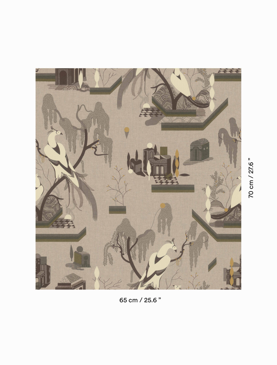 Eine paradiesische Landschaft, gezeichnet vom Illustratorenduo Icinori, wird im Siebdruckverfahren auf eine Leinwand aus reinem Leinen übertragen. Das Motiv nimmt dank einer Abfolge von mehr als zehn präzise ausgeführten Schritten Gestalt an.