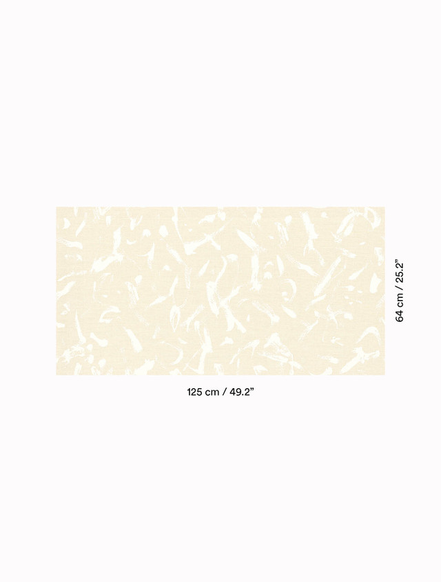 Eine im Siebdruckverfahren bedruckte Chintz-Leinwand aus reinem Leinen verleiht den Wänden eine raffinierte Leuchtkraft. Der unvorhersehbare, unmittelbare und ausdrucksstarke gestische Strich des matten Musters ist auf einem glänzenden Grund umrissen und erinnert in Farbe und Form an die Kunst der Kalligraphie.