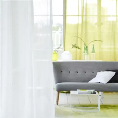 Torno von Designers Guild ist eine neue Variation unseres geliebten Cosia Voile. Dieser moderne Stoff hat ein feines Fischgrätmuster. Schwer entflammbar und waschmaschinenfest.