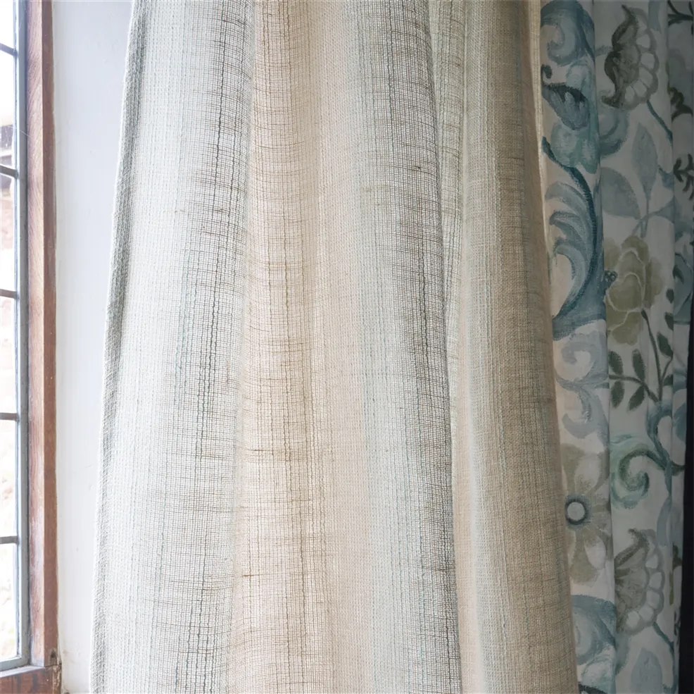 Der Designer Guild Cassien Dekorstoff ist ein eleganter Breitstoff, gefertigt aus einer Kombination von 68 % natürlicher Jute, 22 % Recycled Baumwolle, 8 % Polyester und 2 % Andere Fasern. Mit mittlerem Gewicht und einem feinen Netz-Strukturdesign verbinden sich breite Streifen harmonisch mit der natürlichen Optik der Jute. Erhältlich in fünf edlen Farbvarianten, eignet sich dieses umweltfreundliche Material perfekt für Vorhänge.
