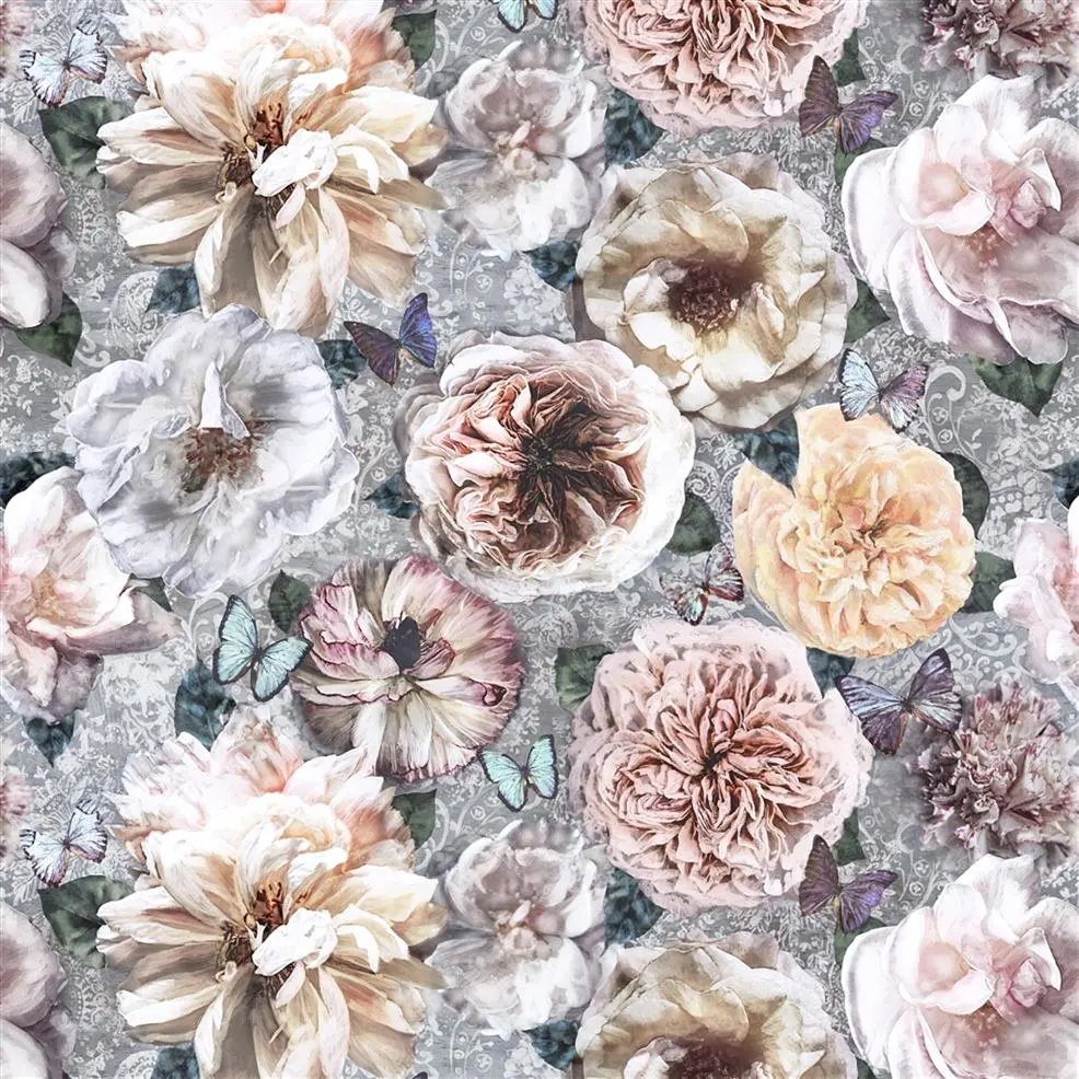 Pahari von Desingers Guild ist ein filigranes Muster aus fein gemalten Blüten und Blütenköpfen, die mit leicht schillernden Schmetterlingen verziert und allesamt in einer fast fotografischen Qualität sind. Ein Digitaldruck auf purem Leinen mit einem soften Finish für die ideale Verarbeitung als Vorhang, Rollo und Kissen. Der großzügige Rapport der Blüten setzt einen modernen Akzent. Erhältlich in zwei tollen Farbvarianten.