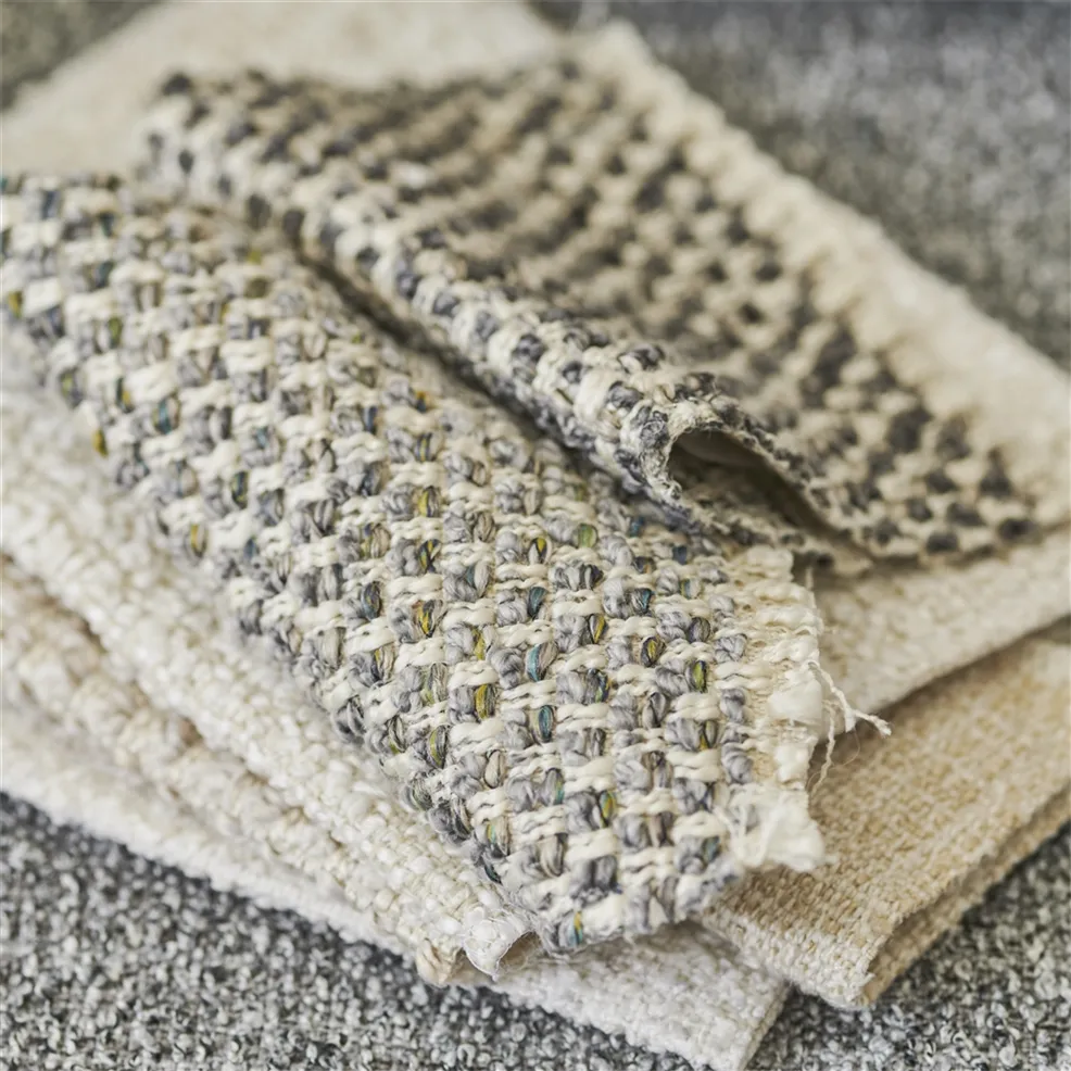 Der Stoff Sandwick von der Marke Designers Guild ist ein dichter, reich strukturierter Bouclé mit vollem Volumen und Struktur. Er besteht aus 43 % recyceltem Polypropylen, 31 % Polyester und 26 % recyceltem Polyester, was ihn zu einer umweltfreundlichen Wahl für einen stilvollen Innenraum macht.