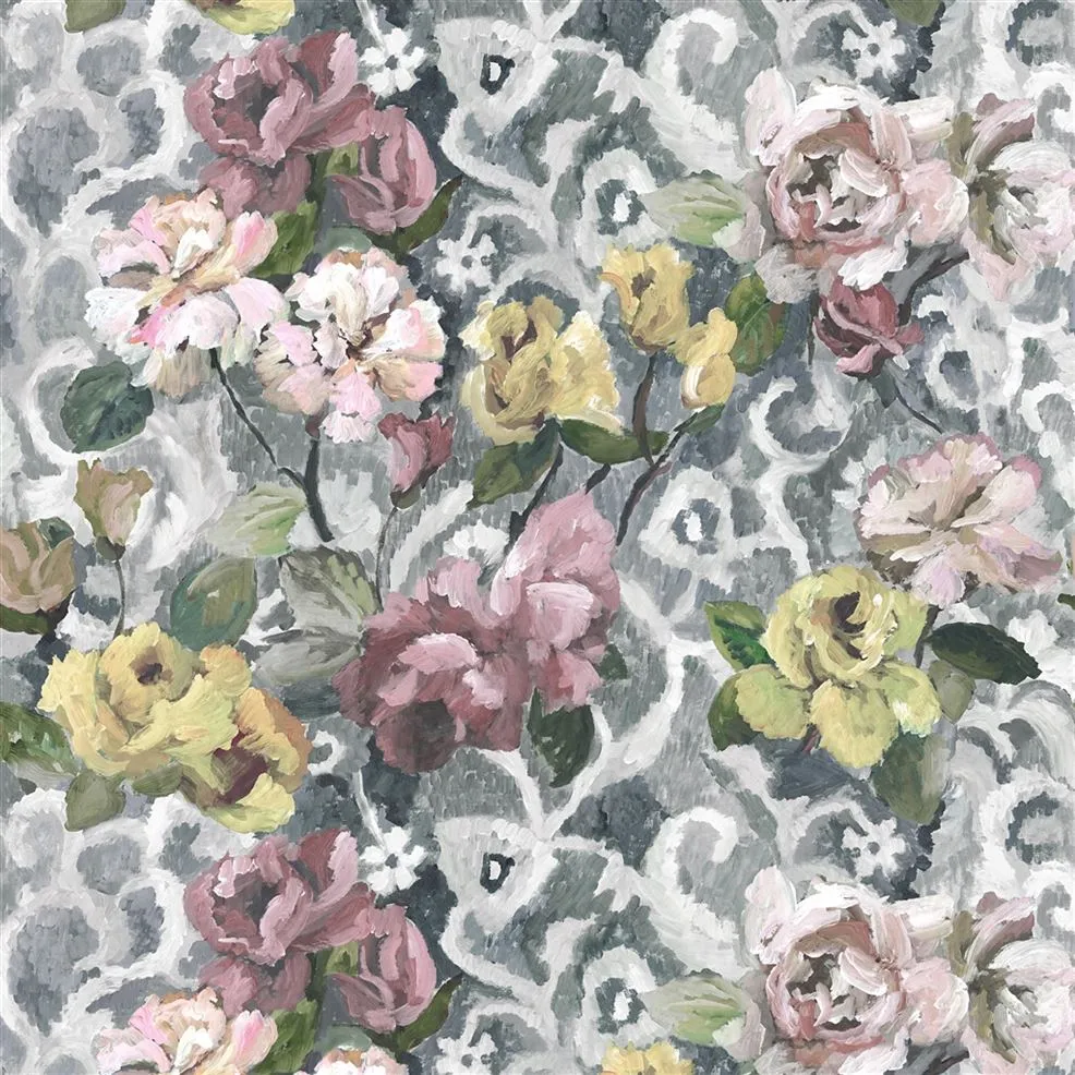 Tapestry Flower von Desingers Guild zeigt dekorative Rosen und Pfingstrosen schmücken einen abstrakten Damast Hintergrund. Dieses aussagekräftige Blumenmuster wird digital auf ein weiches, gewalktes Leinen gedruckt. Erhältlich in vier verschiedenen Farbkombinationen. Eignet sich hervorragend für Vorhänge, Kissen und Rollos. Ökö-Tex zertifiziert.