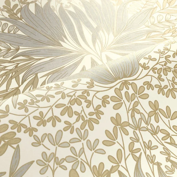 Das sechzehnte Pariser Arrondissement beherbergt zahlreiche Jugendstilvillen, darunter die Villa Jassedé in der Rue Chardon-Lagache, in der einst Hector Guimard wohnte. „Chardon“ ist ein ornamentales Design, das von der gleichnamigen Straße und der Künstlerbewegung inspiriert ist, die sich dort entwickelte. Das Motiv stellt eine blühende Blume dar, die auf dem Papier ruht und von anmutigem Blattwerk umgeben ist, dessen Kurven uns sanft umhüllen. Dieses Gefühl wird durch das faserige Aussehen der Unterlage verstärkt, die ideal für dieses Design ist und mit Metallic-Farben hervorgehoben wird.