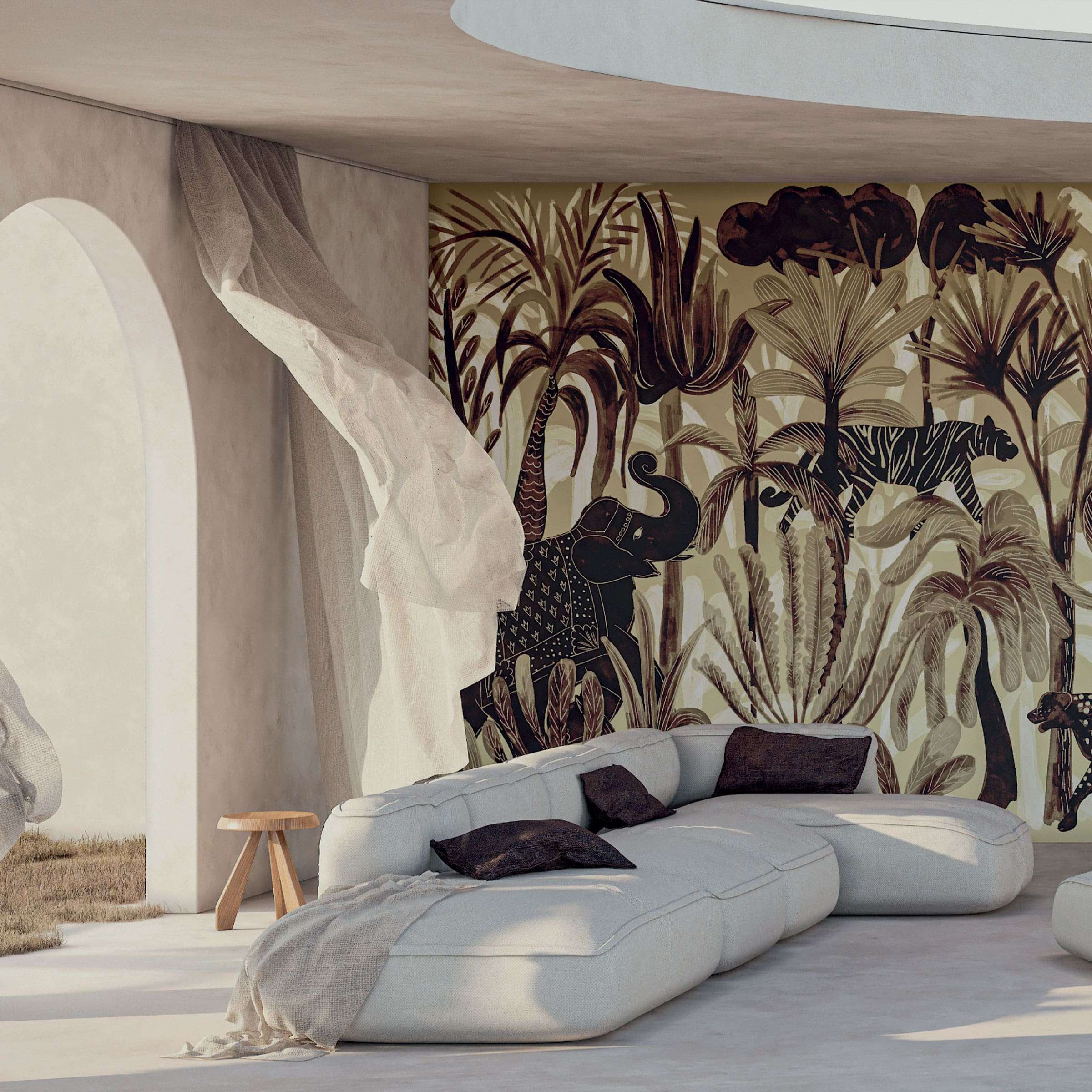 Diese Tapete schafft eine ruhige, meditative Erscheinung und eignet sich perfekt für zentrale Flächen, wie eine Wand im Wohnzimmer, im Empfangsbereich oder in einem Inspirationsraum. Ihre ruhige Wirkung harmoniert ideal mit minimalistischen oder zeitgenössischen Einrichtungskonzepten