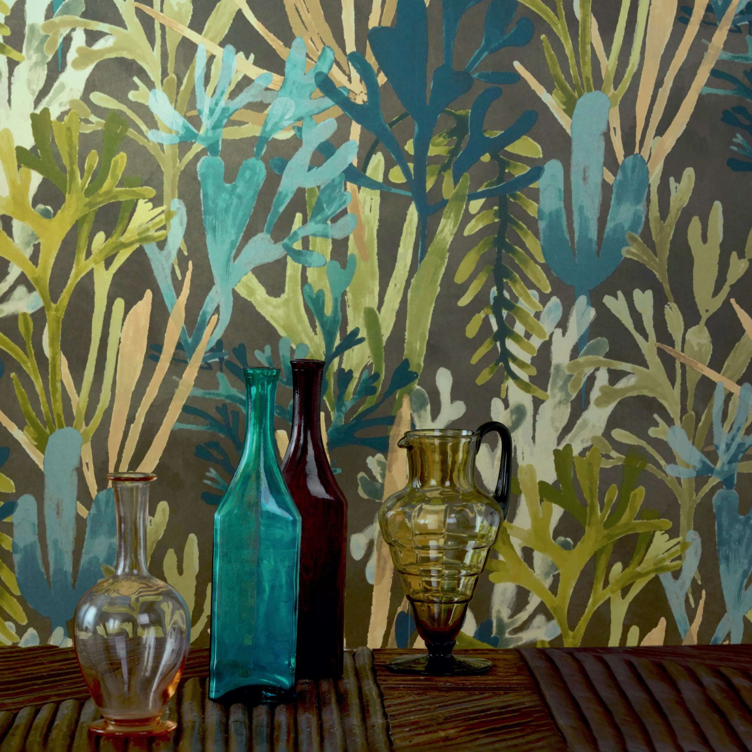 Aus der Flower Power – Alocasia Kollektion: Diese Serie lebt von opulenten Blattkompositionen im Aquarellstil, die die Leidenschaft für Natur, Farbe und Form aus den 70er Jahren neu interpretieren – kombiniert mit zeitgenössischer Eleganz und französischem Designanspruch. Algues besticht durch die gelungene Kombination aus optischer Tiefe, künstlerischer Raffinesse und technischer Robustheit – eine Tapete, die Räume nicht nur visuell bereichert, sondern auch mit Qualität überzeugt