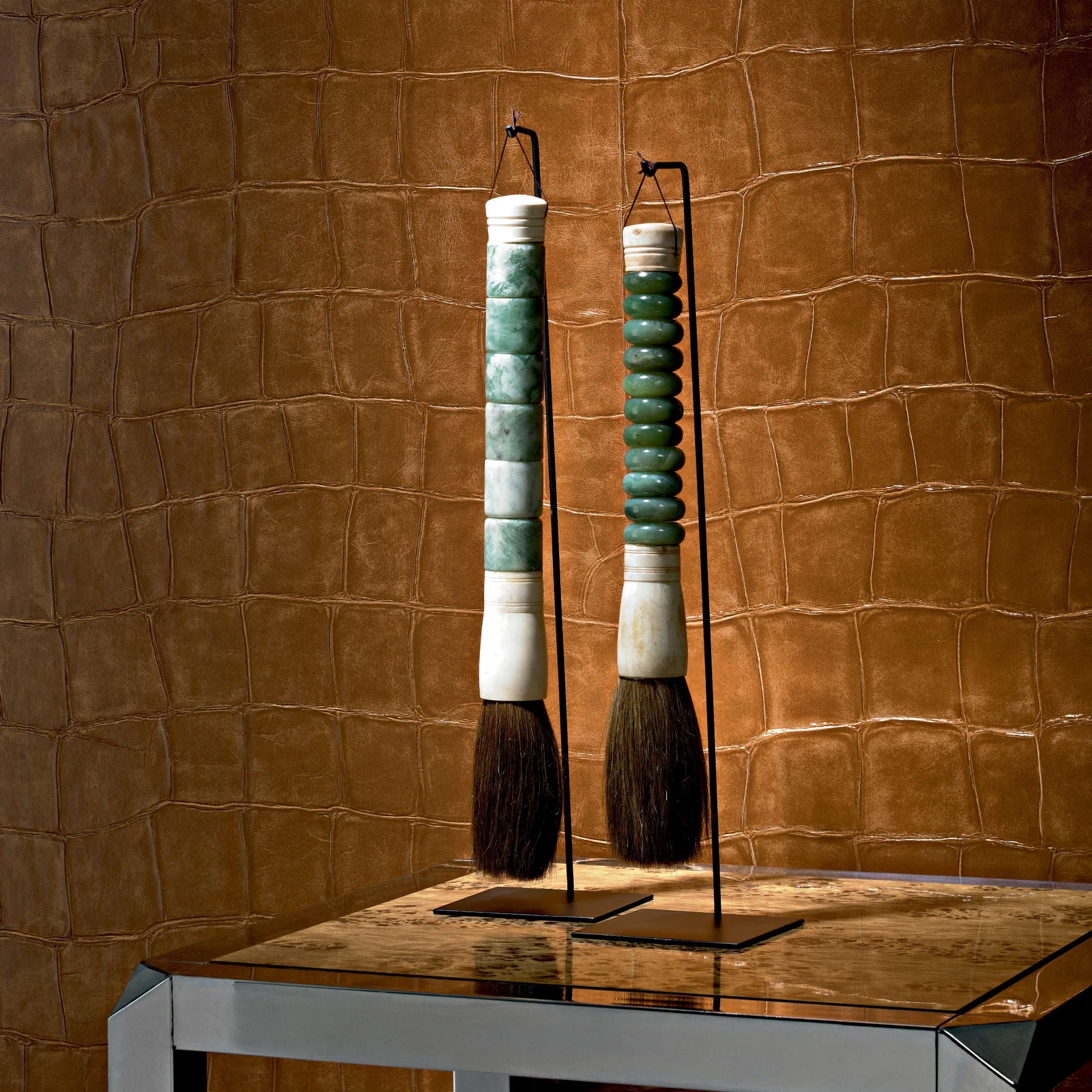 Das Design entstammt der Kollektion Anguille Big Croco Legend, die animalische Kraft mit französischer Couture verschränkt. „Au pays Himbas“ ist inspiriert von der Ästhetik afrikanischer Kulturen, symbolisiert durch die volkstümliche Eleganz der Himbas und interpretiert durch hochkarätiges Wanddesign – kraftvoll, edel, ausdrucksstark. Mit Big Croco holen Sie sich texturale Spannung, exotische Inspiration und technische Exzellenz in Ihr Zuhause. Die Tapete bietet sinnliche Präsenz, hochwertige Verarbeitung und überzeugende Alltagstauglichkeit – ein luxuriöses Statement für anspruchsvolle Wohnästhetik