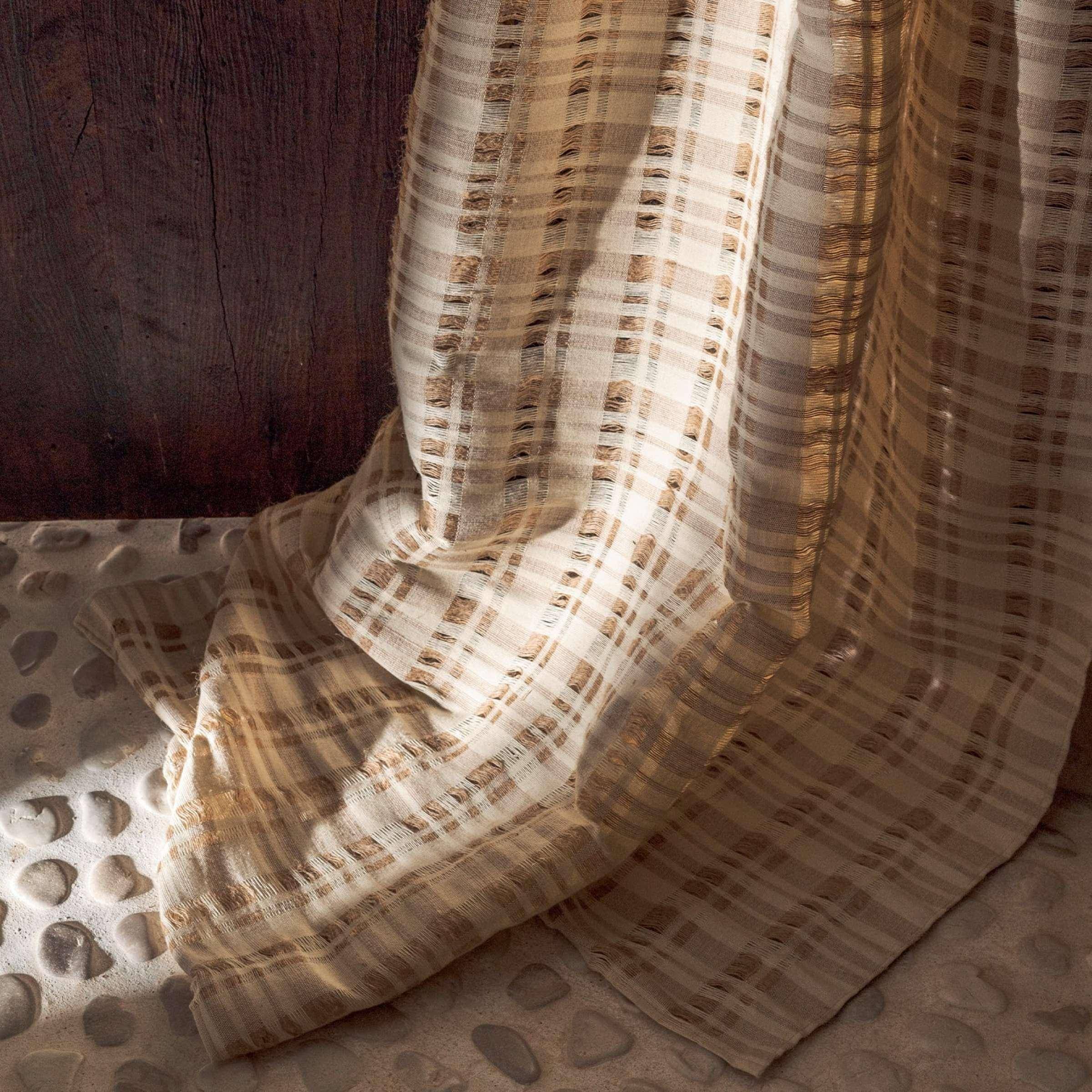 Handgewebt, unregelmäßige Karos, Baumwoll- und Jutemischung, handgefertigte Schönheit, pure Schlichtheit, mattes Gewebe