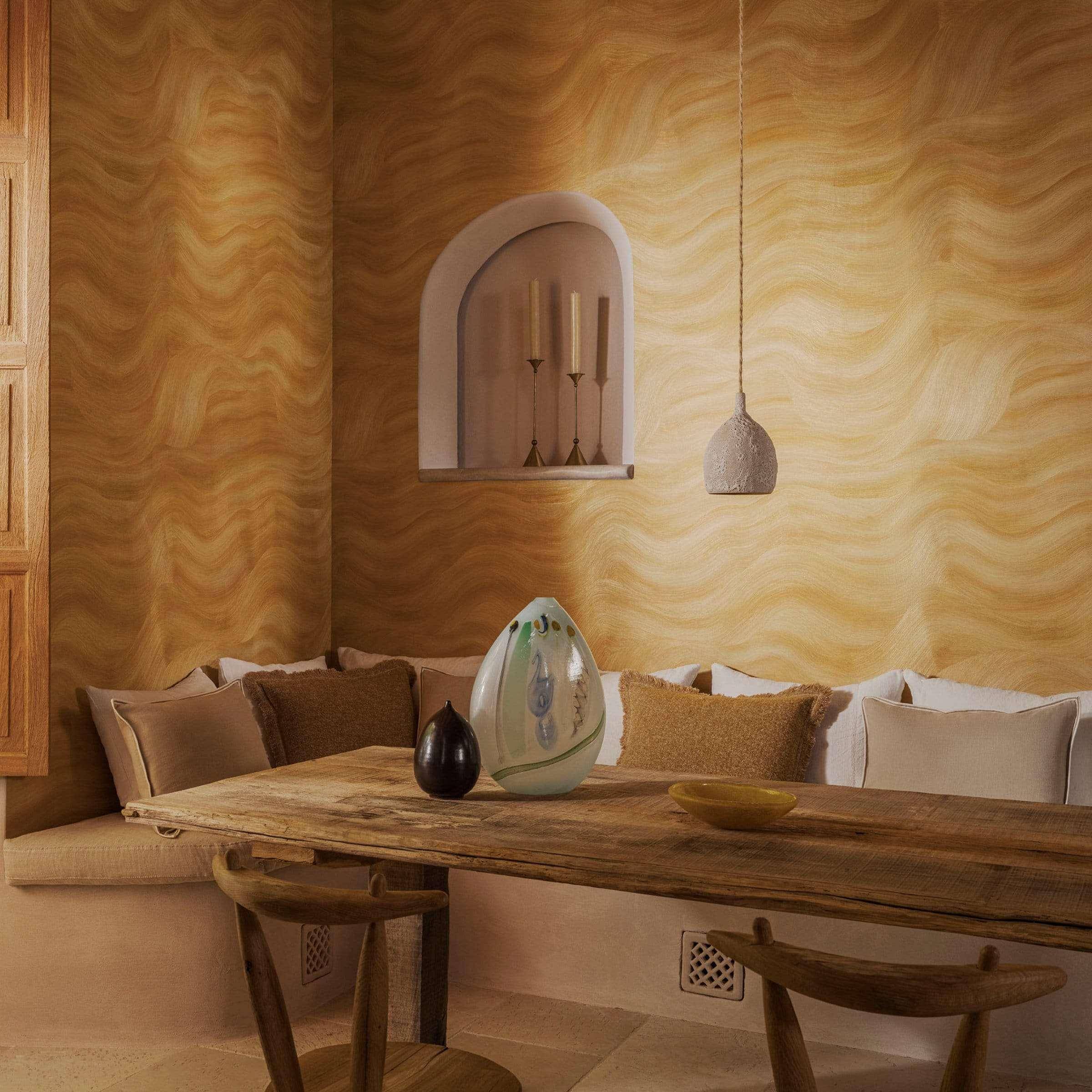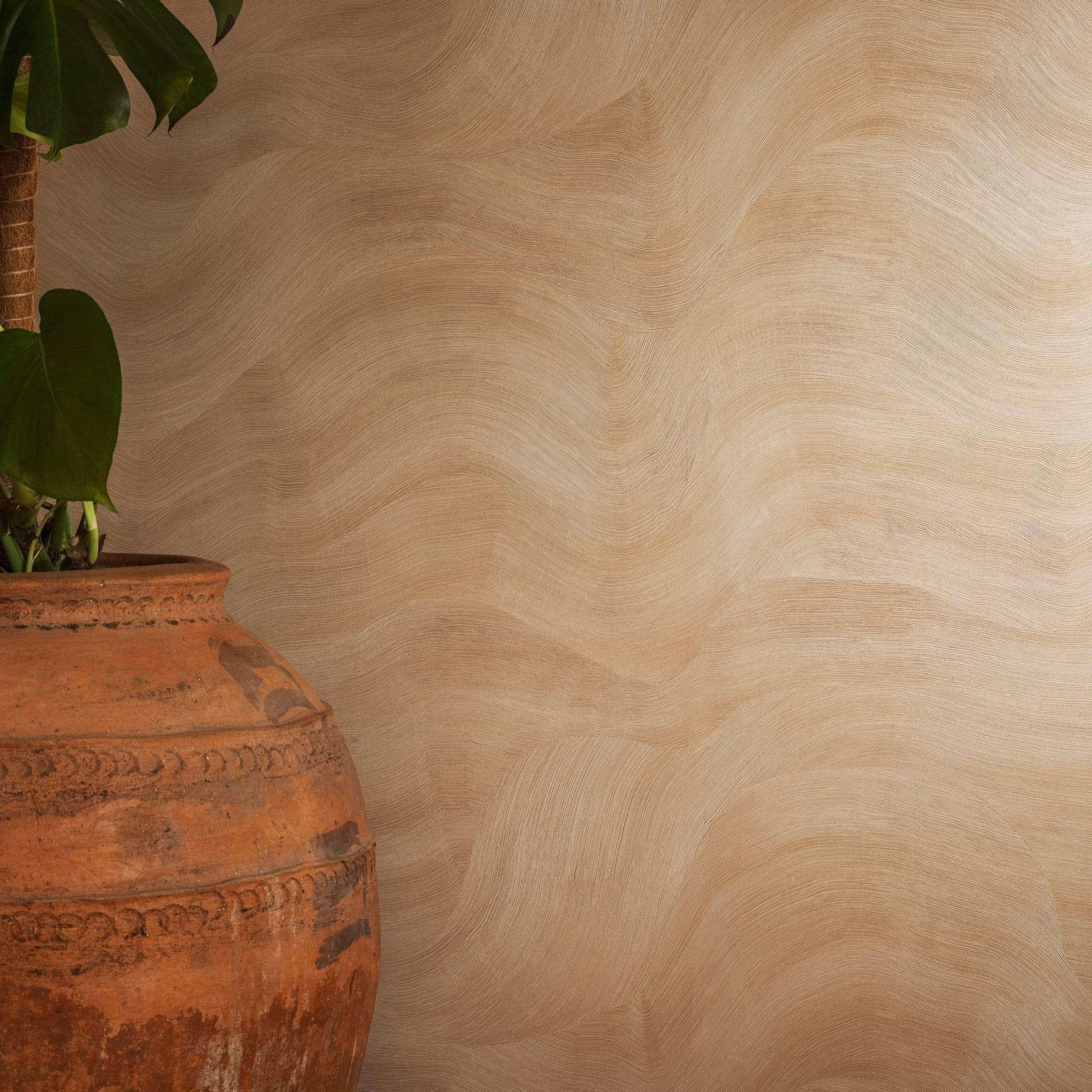 Mit seiner organischen Formsprache und seinem architektonischen Flair steht die Tapete Calero für die luxuriöse Design‑Philosophie von Élitis: Handwerkliche Qualität, inspirierende Materialien und eine tiefe Verbundenheit mit der Natur, die jedem Interieur Ausdruck verleiht. Gefertigt aus hochwertigem Vinyl auf stabilem Trägermaterial bietet Calero nicht nur eine optisch faszinierende Wandfläche, sondern auch praktische Vorteile: Sie ist pflegeleicht, langlebig und lässt sich sorgfältig anbringen – ideal für alle, die ihre Wände mit Textur, Charakter und moderner, natürlicher Raffinesse ausstatten möchten. Das Design zeichnet sich durch fein strukturierte, horizontale Nuancen aus, die an die sanfte Erosion von Sand, Stein oder Wasser erinnern und ein beruhigendes, fast meditiertes Raumgefühl schaffen. Diese Tapete bringt Ruhe und Eleganz in Wohnräume, Lounges oder repräsentative Bereiche, ohne dabei laut oder aufdringlich zu wirken