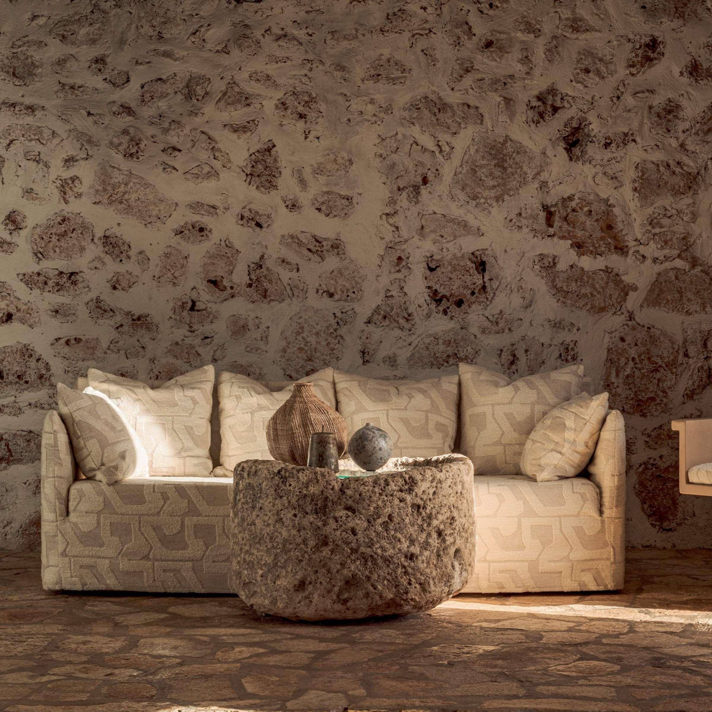 Ein Raum, der von Élitis geprägt ist, lebt von seiner greifbaren Textur. Die dominanten, dreidimensionalen Wandbekleidungen entfalten ihre maximale architektonische Kraft, wenn sie gezielt kontrastiert werden. In der Kombination mit den fließenden, eleganten Stoffen und Gardinen aus unserem Portfolio entsteht ein perfektes Spannungsfeld zwischen roher Materialität und textiler Weichheit. Bei Villa Kontor setzen wir die visionären Entwürfe von Élitis als kraftvolle visuelle Ankerpunkte ein – sowohl in urbanen Lofts und privaten Residenzen als auch in fließenden Übergängen zu unseren anspruchsvollen Outdoor-Konzepten, in denen die archaischen Strukturen der Natur im Design ihre Fortsetzung finden.