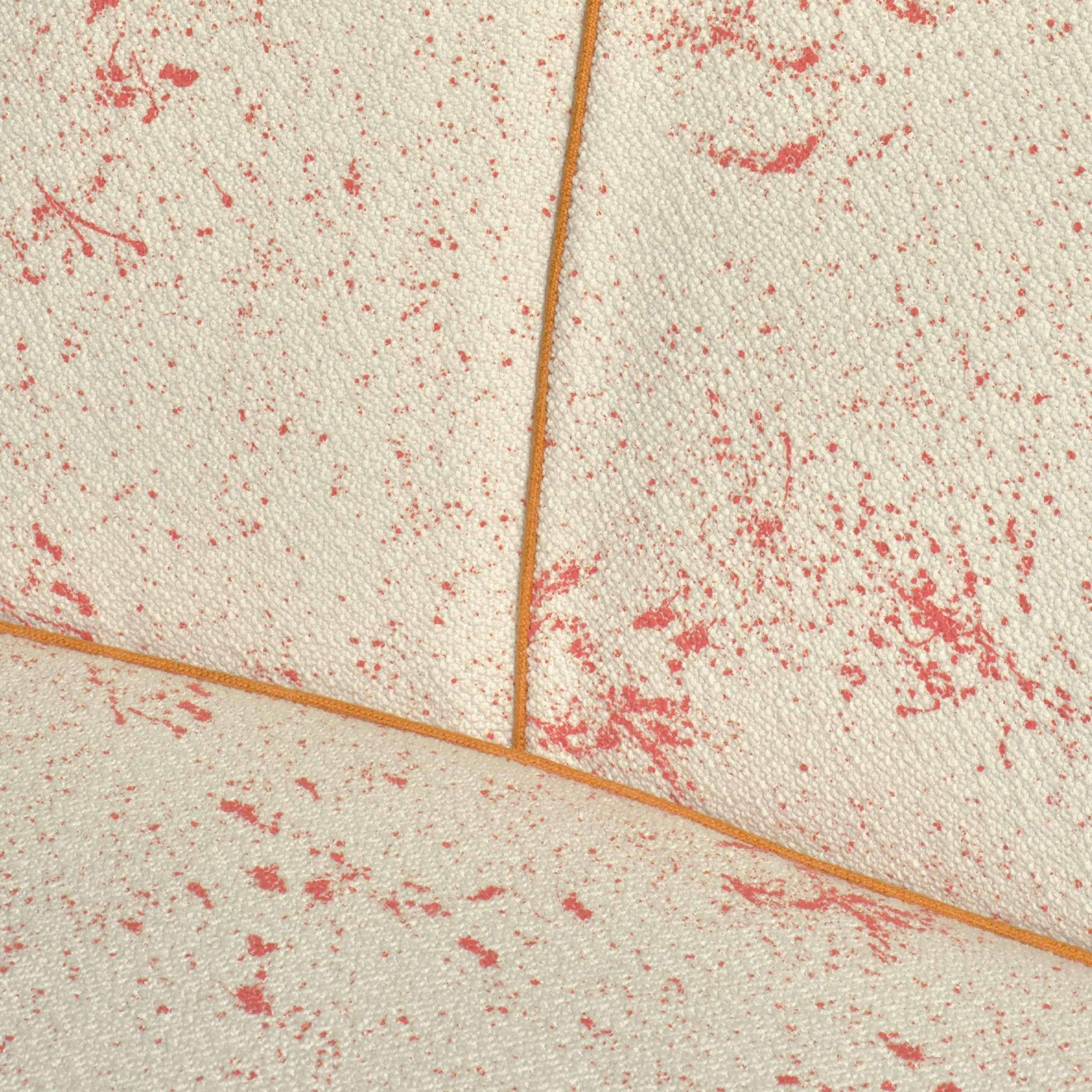 Wollbouclette, für Polster und Vorhänge, weicher und glatter Griff, inspiriert von Pollocks Dripping-Effekt, Zufallsmuster, mit einem stets neutralen elfenbeinfarbenen Grund, Rotationsdruck mit Zylinder.