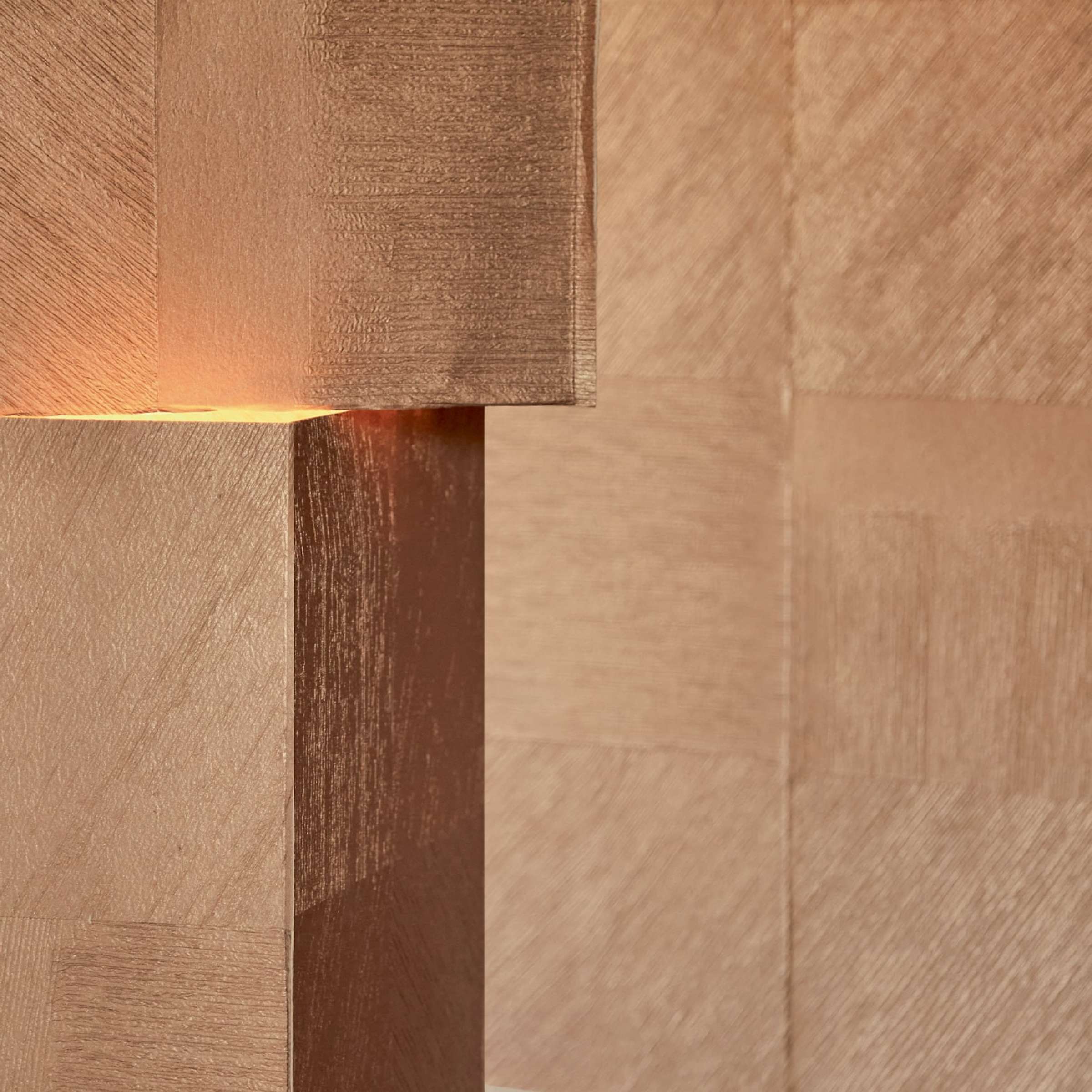 Élitis Koshi verbindet Kunst und Materialität auf subtile Weise – ideal für stilvolle Wohnzimmer, elegante Empfangsräume oder ruhige Büros. Die geometrische Reliefform reflektiert zurückhaltend, ohne aufdringlich zu sein, und schafft eine sinnliche, zugleich ruhige Atmosphäre. Besonders wirkungsvoll mit reduzierten Interieurs, weißen oder grauen Oberflächen, Metallakzenten und warmen Hölzern als Kontrast