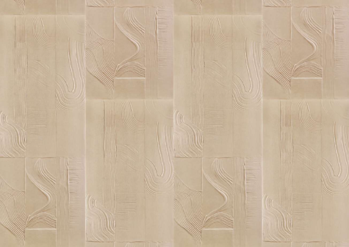 Le jardin d'Aloès bietet eine ruhige, meditative Wirkung – ideal für Aufenthaltsräume, elegante Wohn- oder Empfangsbereiche. Die Ton-in-Ton Reliefgestaltung schafft Ruhe und Tiefe zugleich. Kombiniert mit Naturmaterialien und reduzierten Farben entsteht ein minimalistischer Gestaltungsspielraum voller Poesie und Materialintelligenz