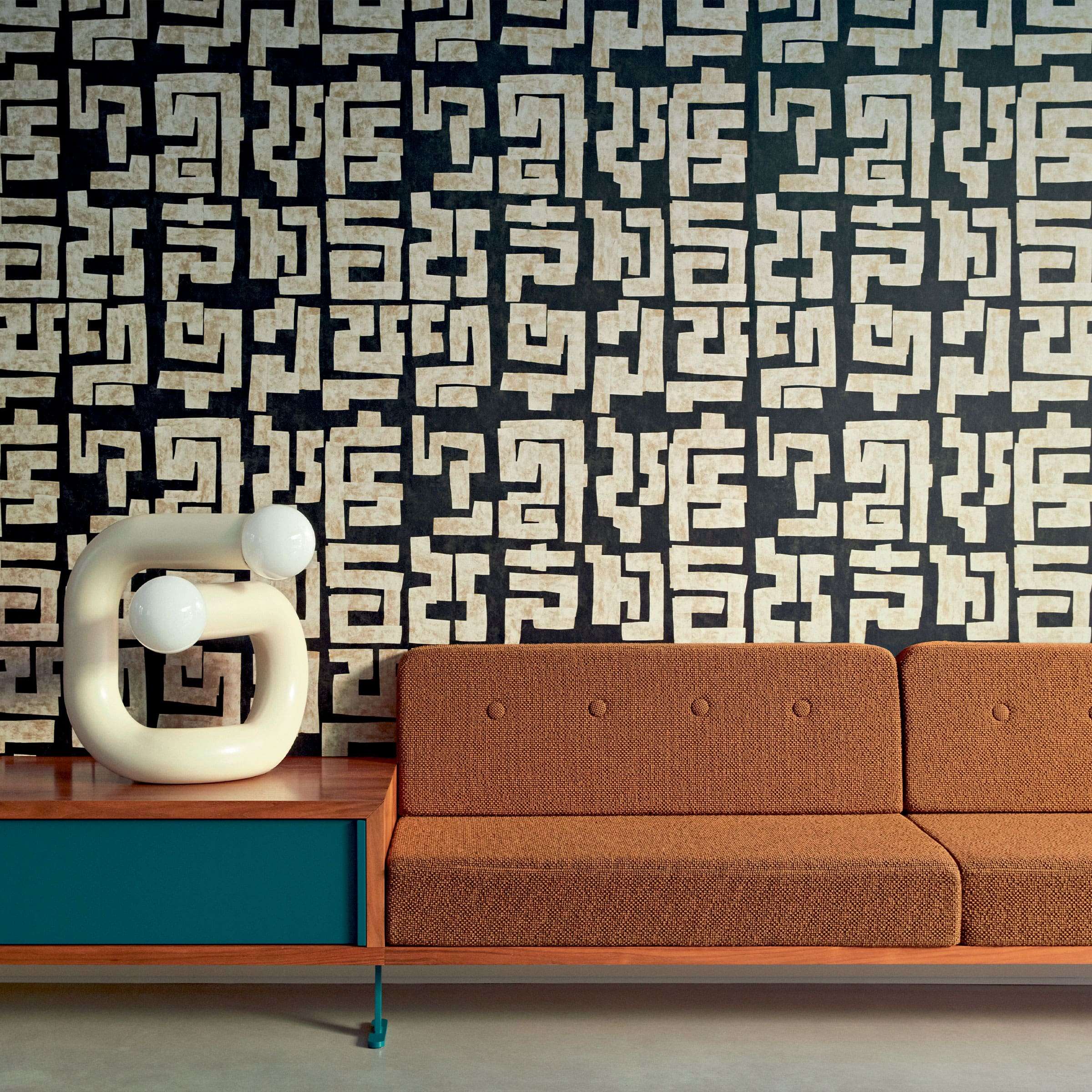 Die Tapete Messages wirkt wie eine sorgfältige Collage aus unterschiedlichen Papierarten – Seidenpapier, Löschpapier, Kraft- oder japanisches Papier. Sie kombiniert überlappende Muster, skizzierte Linien und filigrane Formen, als sei jedes Blatt von Hand komponiert. Pinselnde Tusche, Graphit- oder Kreidestifte und feine metallische Highlights verleihen der Oberfläche eine dynamische, malmalige Ausdruckskraft. Die Struktur wirkt dreidimensional, wechselhaft je nach Blickwinkel, und verleiht dem Raum eine inspirierende, künstlerische Atmosphäre
