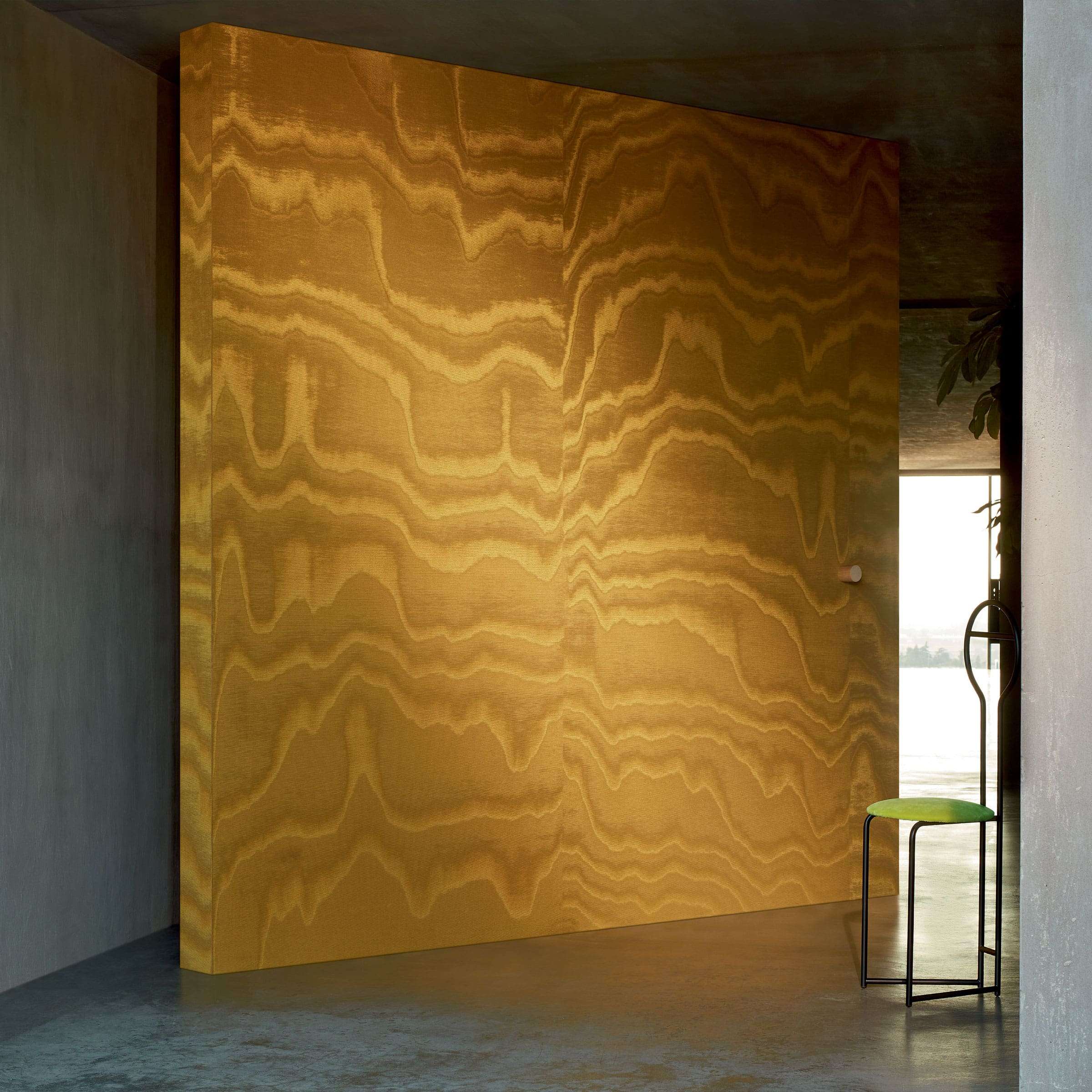 ÉLITIS – gehört zur innovativen Moire-Kollektion und interpretiert den Triumph der Wellenstruktur neu: großflächige „Maxi-Waves“, die in den Himmel wachsen, wirken wie bewegte Landschaften aus Licht und Schatten. Die zufälligen, schattenreichen Verläufe schaffen eine nuancierte, faszinierende Textur, welche die Sensibilität des Materials unmittelbar spürbar macht