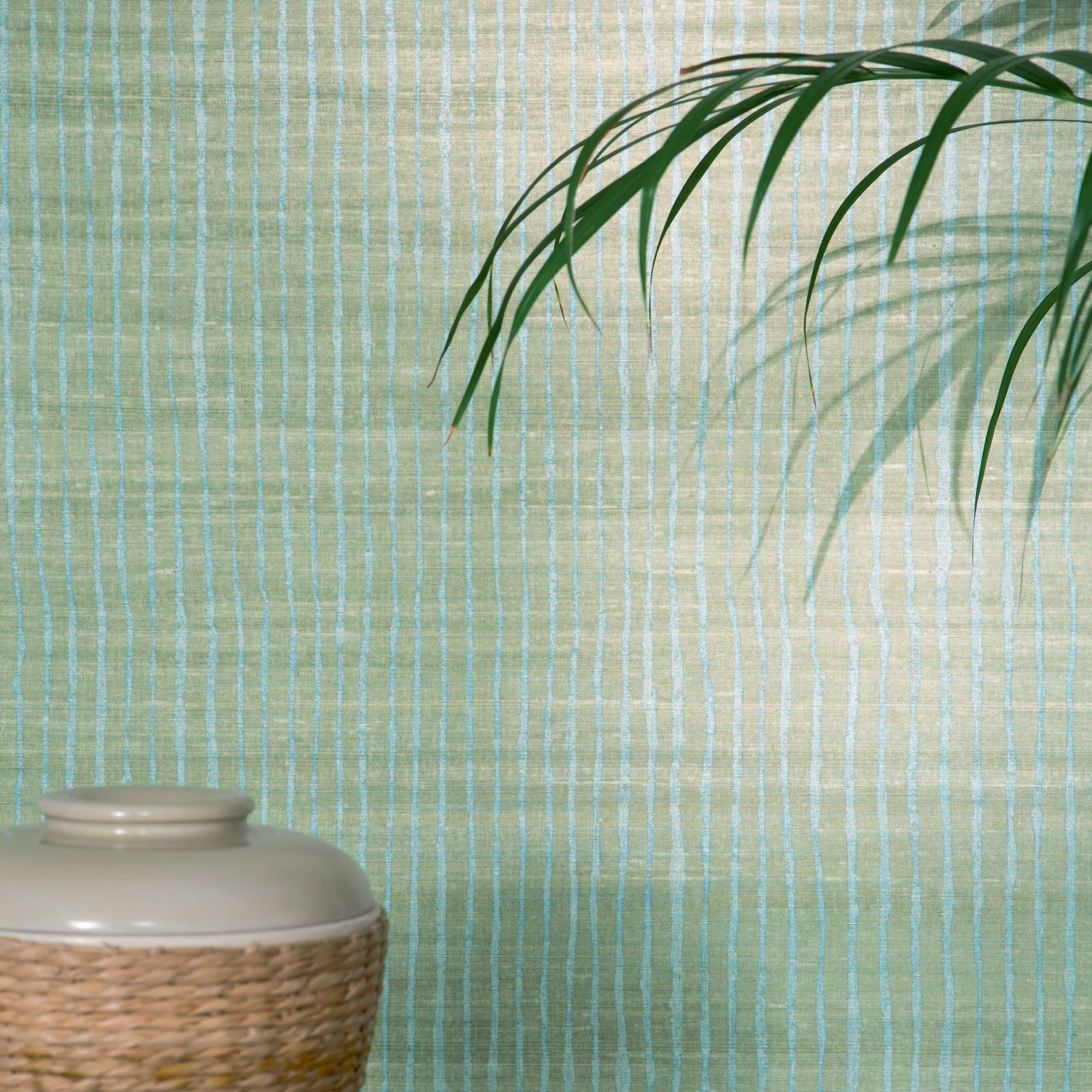 Nila vermittelt den Moment, in dem sich Farbe wie Seide entfaltet. Transparente Farbschichten, feine Streifen sowie geometrische Linien scheinen durch die Struktur zu gleiten und verleihen der Oberfläche ein lebendiges, künstlerisches Relief. Inspiriert vom Silk-Painting-Spirit, entsteht der Eindruck zarter Graffiti oder schwebender Schmuckornamente – eine raffinierte Technik, die Stoff in künstlerische Ausdruckskraft transformiert