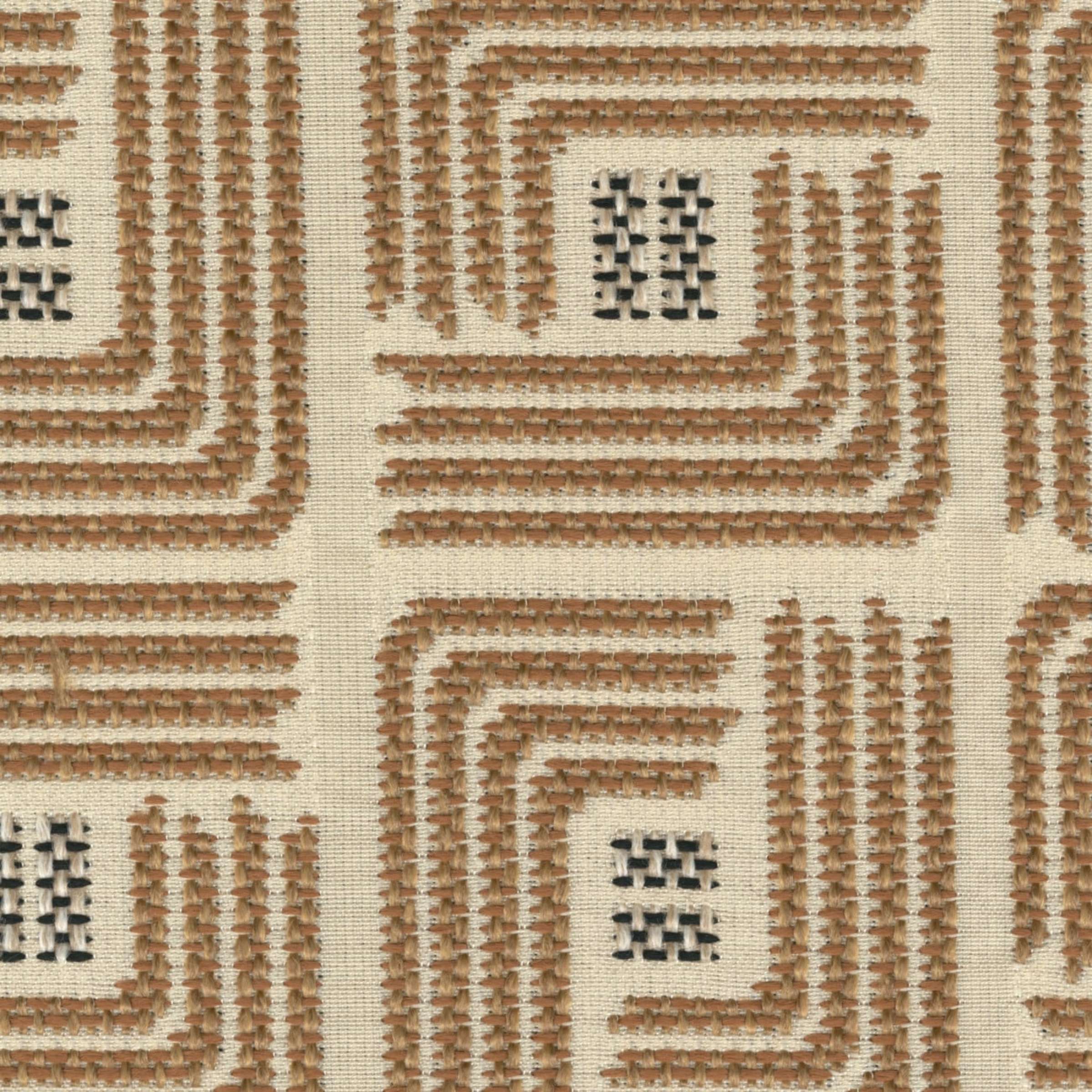 Oura von Élitis ist ein In & Outdoor-Jacquardstoff, Stickereieffekt, geometrische Motive, grafische Komposition, inspiriert von den 70er Jahren, schwer entflammbar