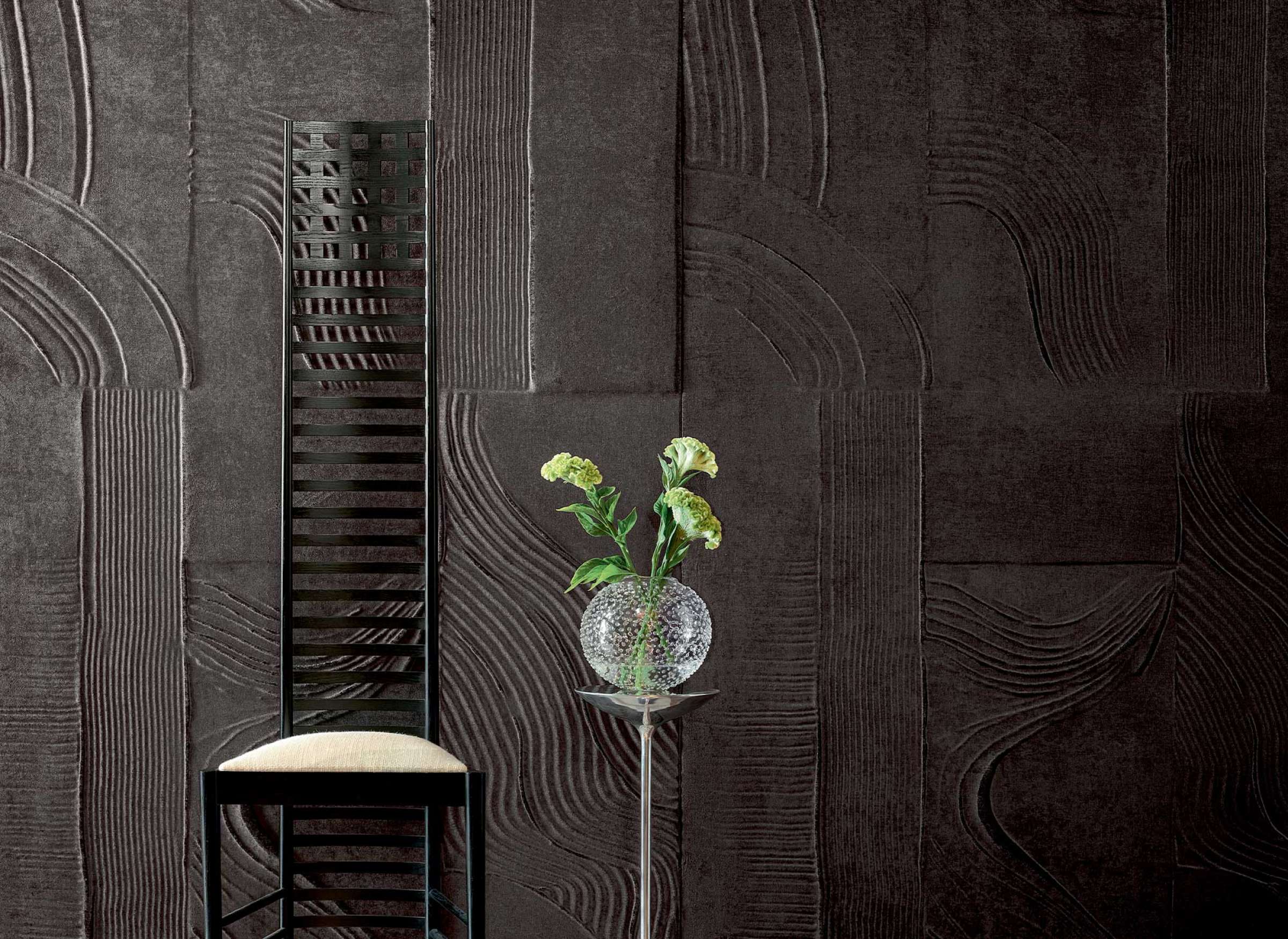 Palimpseste schafft eine tiefgründige, atmosphärische Stimmung – mit monumentaler Reliefstruktur und samtiger Oberfläche. Perfekt für elegante Eingangsbereiche, stilvolle Hotel-Lobbies oder private Ruhezonen. In Kombination mit dunklem Holz, Metall, weichen Teppichen oder reduzierten Möbeln entsteht ein Raum voller Tiefe, Ruhe und skulpturaler Präsenz