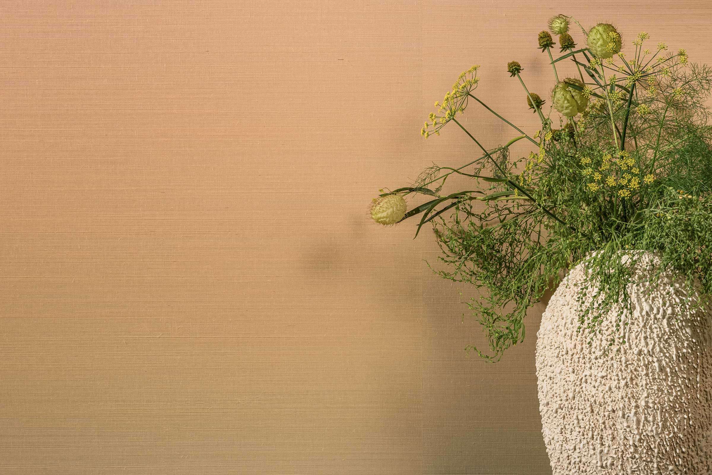 Poésies de l’instant-Serie von Élitis und präsentiert einen zarten Farbverlauf, der an den flüchtigen Moment zwischen Licht und Schatten erinnert. Auf handgewebtem Sisalpapier entsteht eine subtile Farbpalette in sanften Rosé‑, Pfirsich‑ und Goldtönen, die in harmonischer Abfolge träumerisch ineinander übergehen. Die texturierte Oberfläche bringt Wärme und Materialauthentizität in den Raum