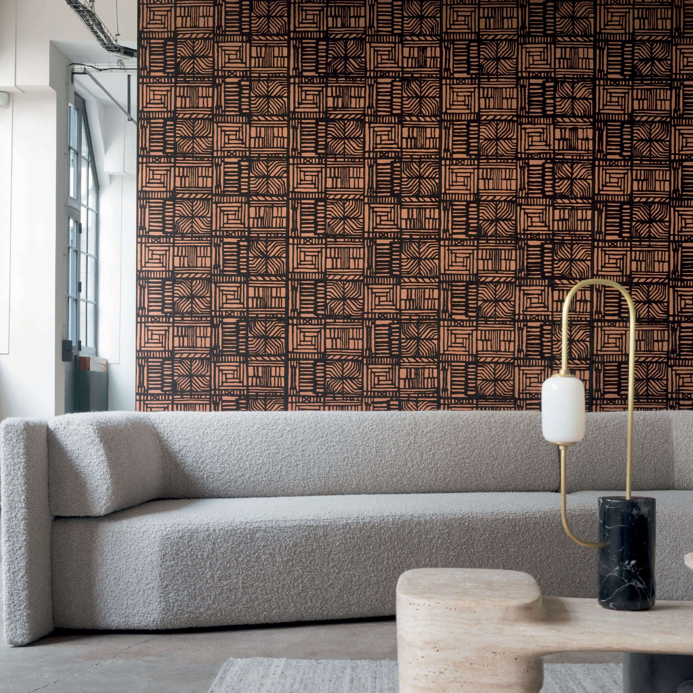 Ideal für anspruchsvolle Wohn- oder Empfangsräume, Bibliotheken oder Galerien, wo eine ruhige, sinnlich-reflektierende Atmosphäre gewünscht ist. Die Mischung aus Relief und metallischem Hintergrund verleiht der Tapete Tiefe und Eleganz – sie wirkt sowohl als ruhiger Begleiter als auch stilvolles Statement