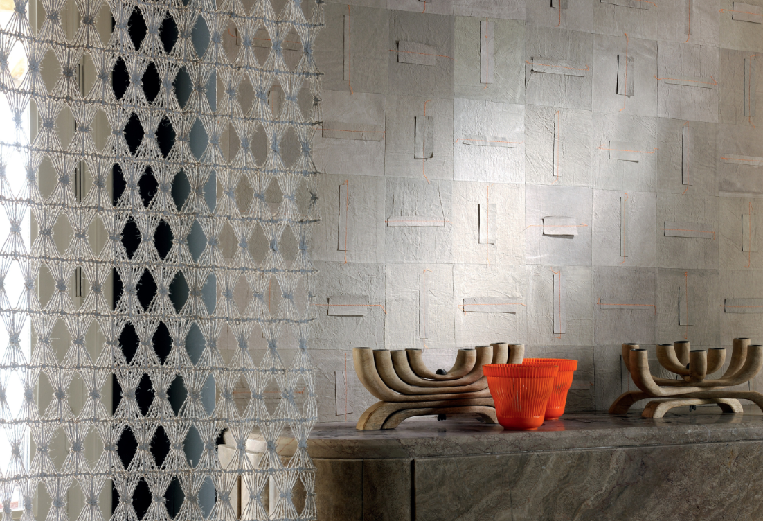 Shirakawa aus der Wall Épure – Shirakawa Kollektion von ÉLITIS ist ein wahres Meisterwerk der Handwerkskunst. Sie besteht aus feinen Papierbändern, die auf einem handwerklich gefärbten Papier aufgebracht sind, welches auf einem robusten Vliesträger fixiert wurde. Diese besondere Struktur verleiht der Tapete eine einzigartige Haptik und Tiefe. Darüber hinaus bietet sie akustische Vorteile und trägt zur Verbesserung der Raumakustik bei
