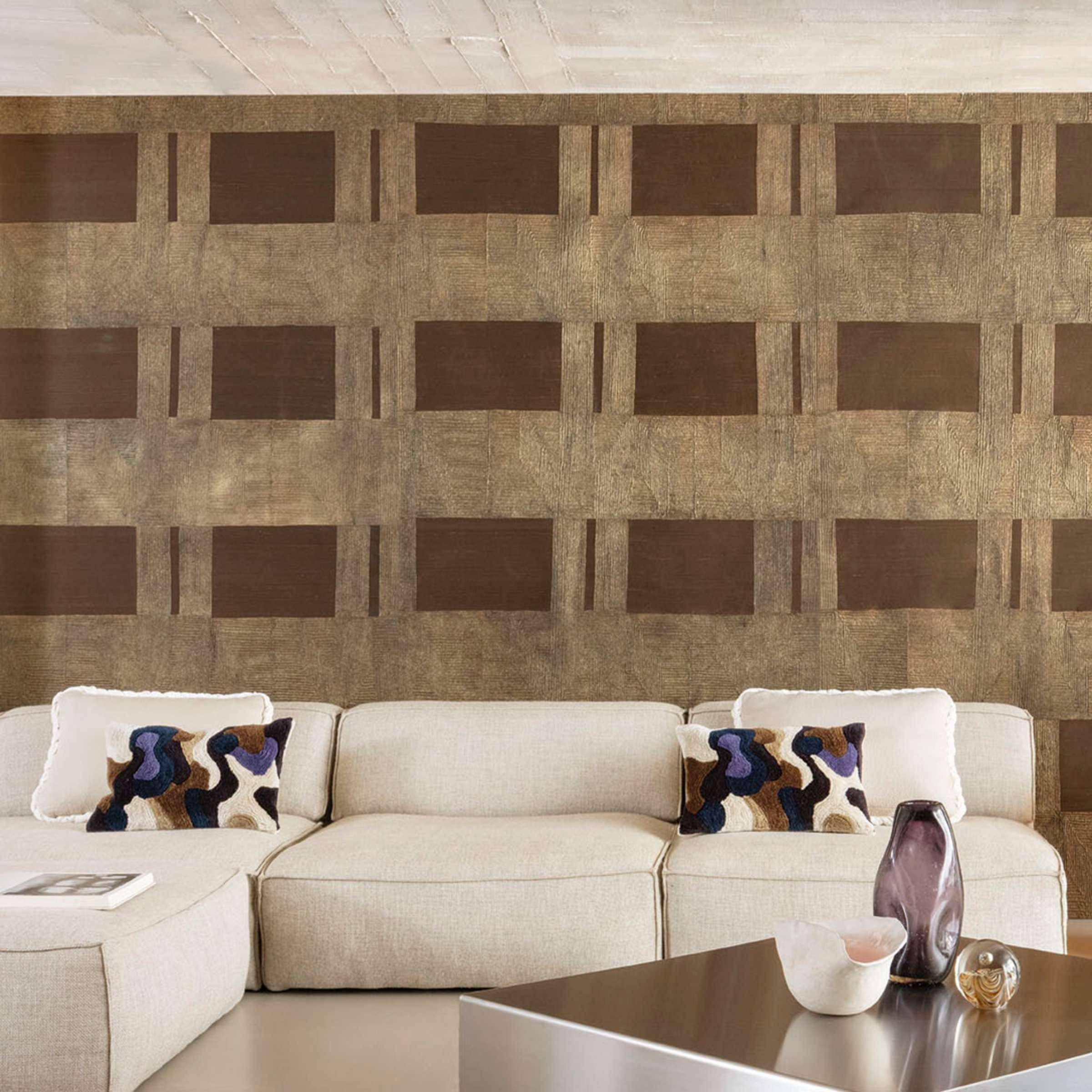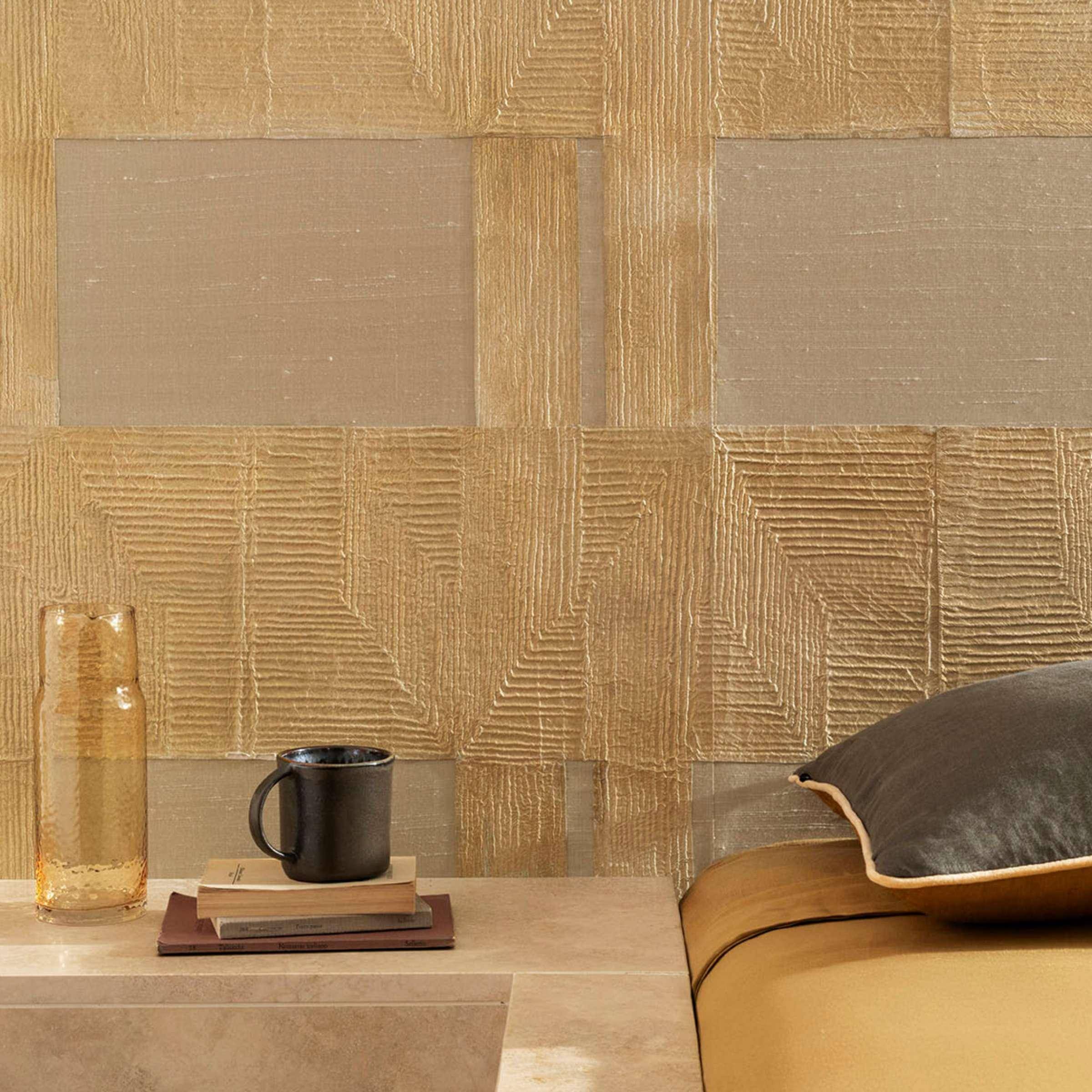 Die Tapete Tashkent aus der Kollektion Pamir von Élitis verbindet textile Eleganz mit architektonischer Klarheit. Breite, vertikale Strukturen und eine lebendige, leicht unregelmäßige Oberfläche verleihen der Wand eine ausdrucksstarke Tiefe. Das Zusammenspiel aus Papier und Seide sorgt für ein faszinierendes Lichtspiel und eine edle Haptik. So entsteht eine ruhige, zugleich charaktervolle Wandgestaltung, die Räume optisch streckt und ihnen eine moderne, luxuriöse Atmosphäre verleiht.