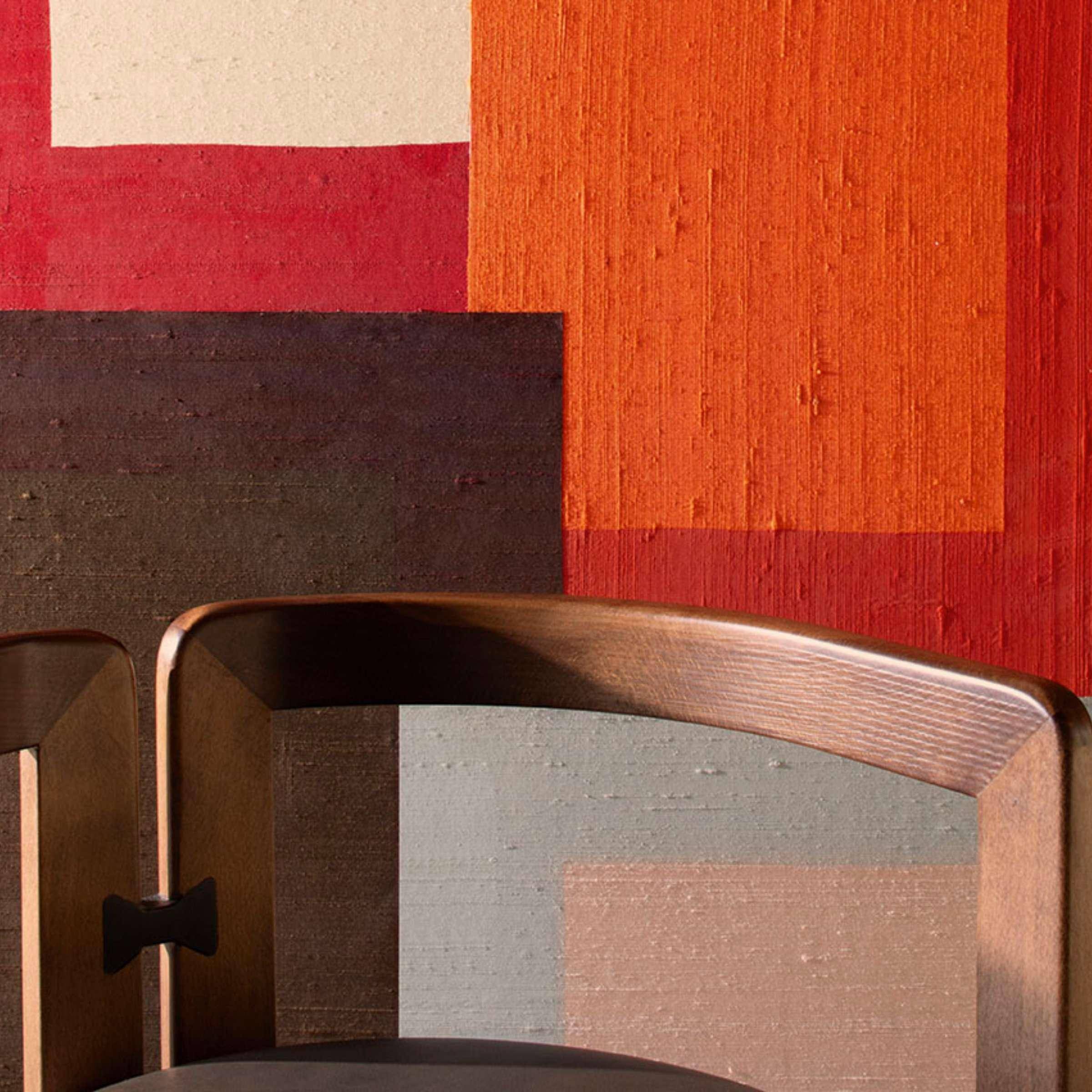 Die Tapete Zenith von Élitis aus der Pamir Kollektion interpretiert moderne Geometrie mit luxuriöser Materialität. Klare Linien und harmonische Farbflächen formen ein ausdrucksstarkes, architektonisches Muster. Die Oberfläche aus reiner Seide verleiht der Wand eine lebendige Textur und ein feines Lichtspiel. So entsteht eine elegante, textile Wandgestaltung mit Tiefe – kraftvoll im Design und zugleich warm in der Wirkung.
