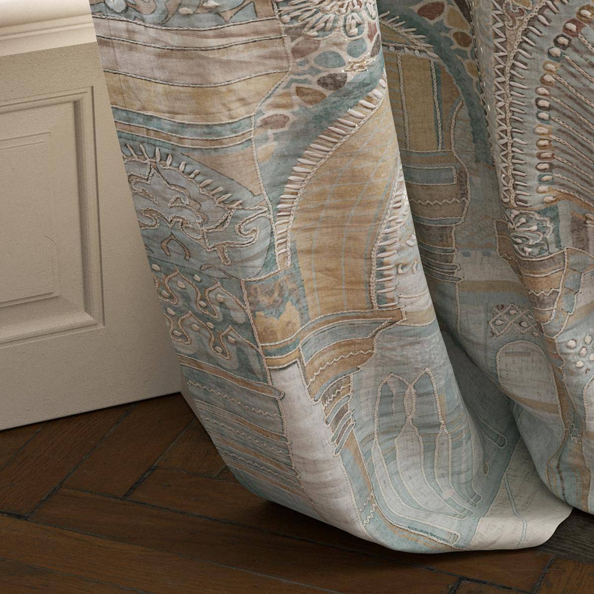 Dank seines Panel-Charakters eignet sich dieser Stoff besonders für großflächige Fensterinszenierungen, exklusive Vorhänge oder dekorative Wandgestaltungen. Die Kombination aus natürlichem Leinen, kunstvollem Druck und hochwertiger Stickerei macht ihn zu einer idealen Wahl für anspruchsvolle Interieurs mit individuellem Charakter.