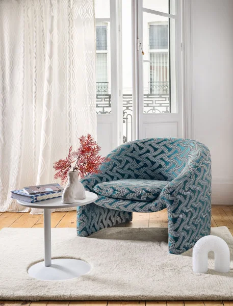 Mit dem Deko- und Vorhangstoff Bakio von Camengo zieht französisches Design in Ihre Räume ein. Der Stoff überzeugt mit einem edlen Ausbrenner-Effekt und einem grafisch gewebten Muster, das für stilvolle Lichtspiele sorgt. Die außergewöhnliche Warenbreite von 297 cm eröffnet zahlreiche Gestaltungsmöglichkeiten – besonders bei großflächigen Fensterfronten.