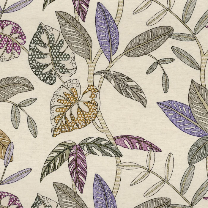 Dieses Gewebe zeichnet sich durch feine Handstickerei aus, die die lebendige Pracht tropischer Vegetation widerspiegelt. Jedes Detail des Designs ist das Ergebnis akribischer Handwerkskunst und kann jeden Raum verwandeln. Die Textur verbindet die Natürlichkeit von Leinen mit der Weichheit der Viskose, was einen Eindruck von hoher Eleganz und kunstvollem Ausdruck erzeugt.