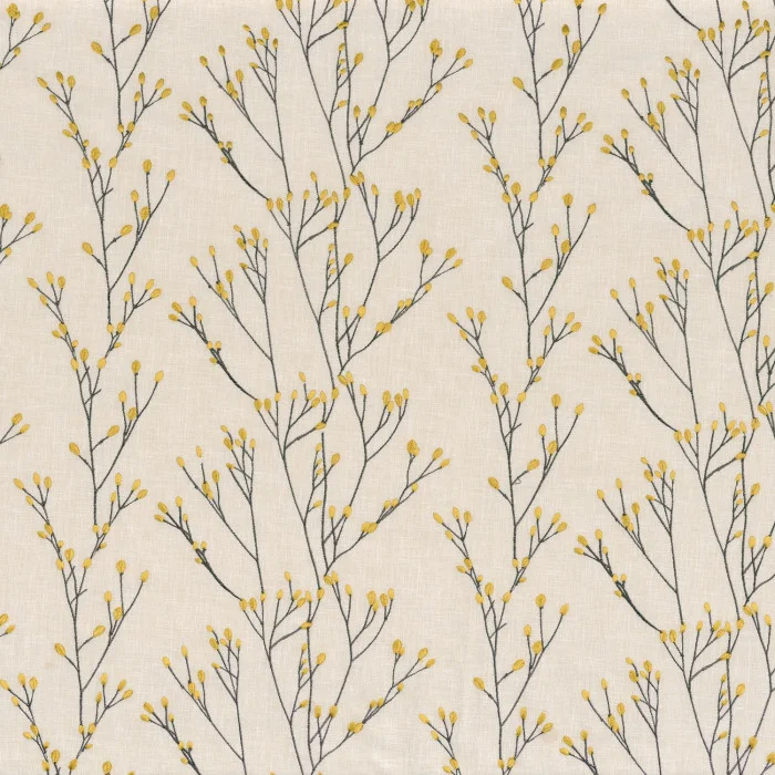 Der Vorhangstoff Lison von Camengo bringt die Leichtigkeit des Frühlings direkt in Ihre Räume. Zarte, stilisierte Gräser wurden mit feinem Garn auf einen weichen Stoff gestickt – die Knospen wirken wie frisch geöffnet und verleihen dem Design eine natürliche Lebendigkeit.