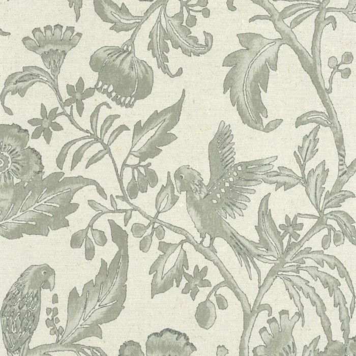 Ein wirbelndes Muster wie ein Vogelflug Auf einem Hintergrund, der an rohes Leinen erinnert, sowohl kostbar als auch natürlich, ein exotisches Muster aus Aras und Blättern... Weit entfernt von der tropischen Tapete, bricht CASADECO mit den Regeln, um an Raffinesse zu gewinnen. Modische Farben wie Cognacbeige oder Salbeigrün, ein nüchternes Design, das mit dem Vintage-Effekt spielt, ein Eindruck von wirbelnder Bewegung.