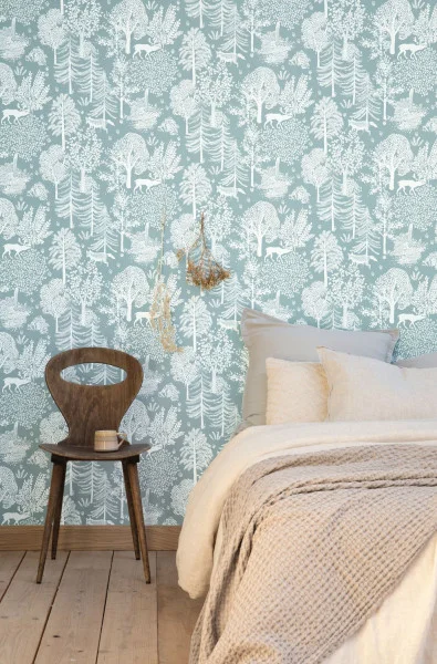 Die Tiere des Waldes sind in unserem Haus zu sehen! Cerfs et autres renards s'illustrent dans une fresque végétale entre arbres et conifères. Eine Landschaft, die mit der unserer Waldspaziergänge nicht zu vergleichen ist.