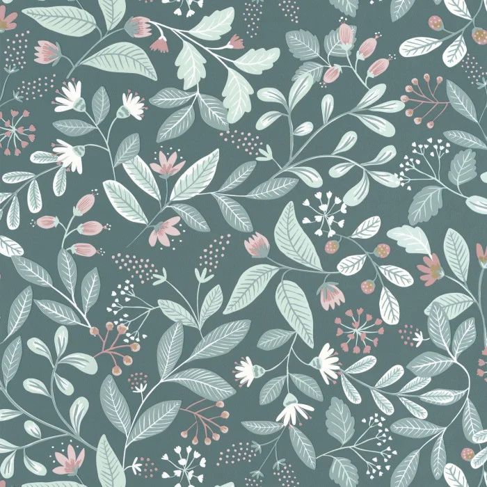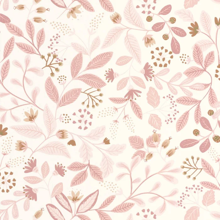 Ein Hauch von Retro, wahnsinnig trendy! Dieses Pflanzendesign ist mit seinen klaren Zügen, den pudrigen Farben und den goldenen Akzenten das emblematischste der Kollektion.