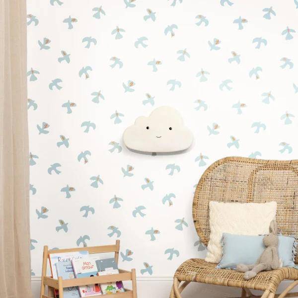 Dies ist vielleicht das poetischste Design der Kollektion! Ein schöner Schwarm von Friedensvögeln ist zart auf einem Hintergrund aus leuchtenden Unifarben gezeichnet, ein schönes Symbol für ein schönes Design.