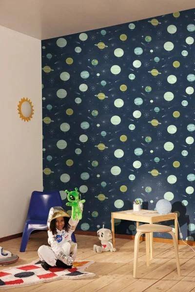 Wir steigen in die Rakete unserer Träume und begeben uns auf eine interstellare Reise. Es gibt zwei Arten von Motiven: Planeten für diejenigen, die alles lieben, was sich im Kreis dreht, oder eine Milchstraße für die Träumer, die ihren Kopf in den Sternen haben. Bei den Farben finden wir die Grüntöne, die in dieser Auswahl beliebt sind, und auch leuchtende helle Hintergründe und tiefere dunkle Hintergründe. Und was noch besser ist als Sternschnuppen: Einige Motive leuchten nach, wenn das Licht ausgeschaltet wird... als ob man dort wäre.