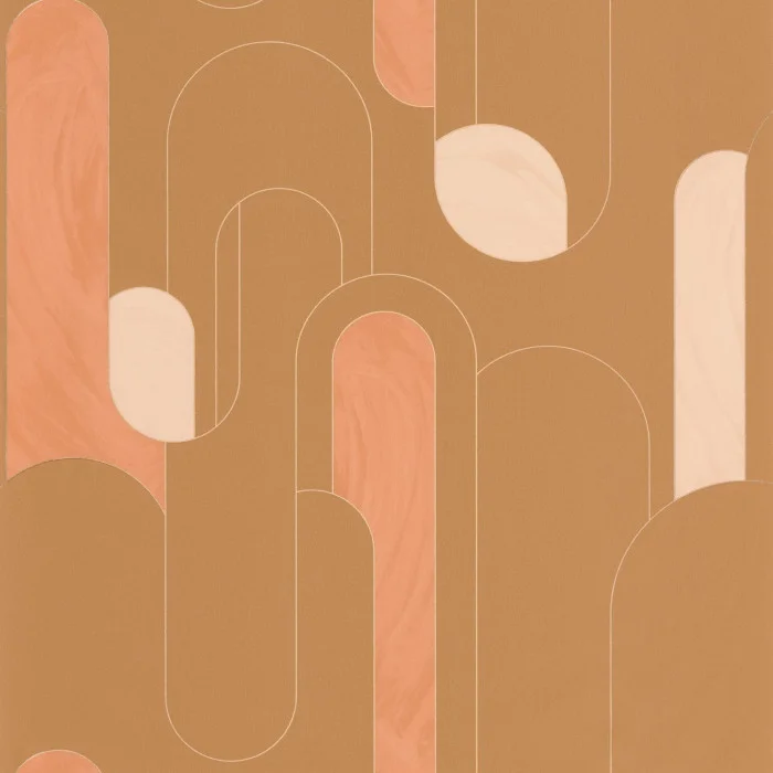 Dieses Muster mit seinen runden Kurven, die sich über die gesamte Länge erstrecken und mit goldenen Linien versehen sind, inspiriert den Chic der 30er Jahre. Perfekt, um einen Raum zu vergrößern. Wählen Sie aus der Farbpalette der Saison.