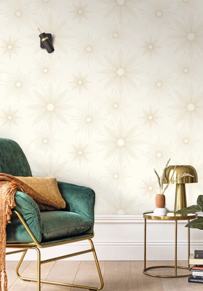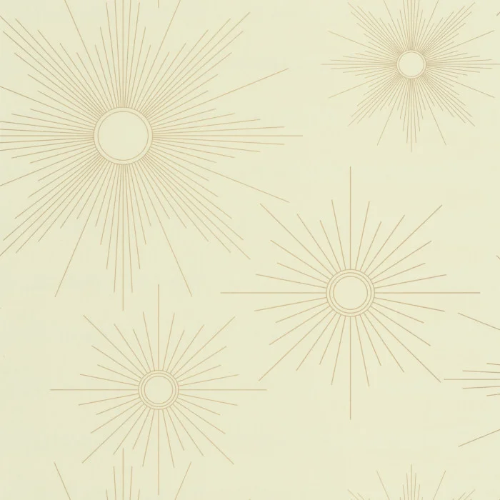 Die Tapetenkollektion Caselio William ist eine Hommage an den lebendigen Art-Déco-Stil und bietet fünf einzigartige Sonnenmotive in unverwechselbaren Farben. Diese Tapete schafft eine Atmosphäre von Eleganz und Licht, perfekt für moderne Innenräume.