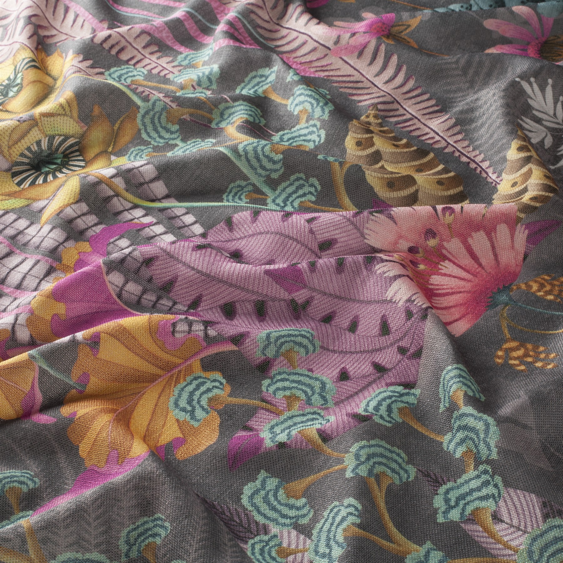 Ritual Spirit, ein dekorativer Stoff von Chivasso für Vorhänge, Zierkissen und andere Heimtextilien, ist eine harmonische Verbindung von Funktionalität und ausdrucksstarkem Design. Das markante Blumenmuster verleiht jedem Raum Tiefe und Charakter, während die großzügige Breite von 300 cm den Stoff besonders für nahtlose Gardinen geeignet macht.