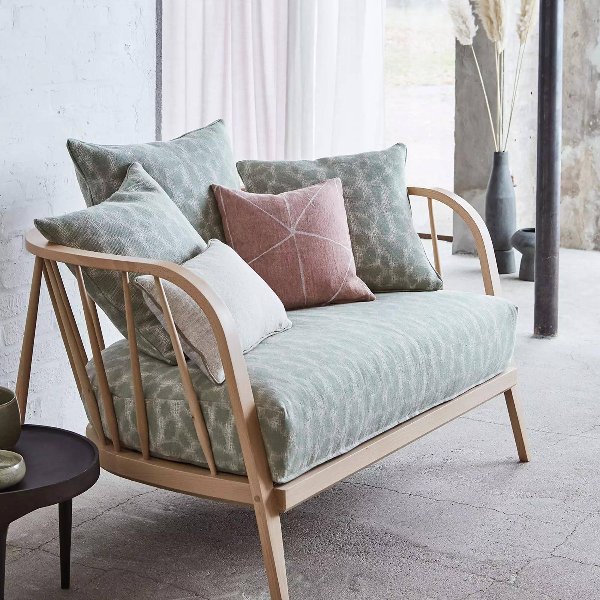 Bezugsstoff mit einem strukturbetonten, ornamentalen Dessin. Blattähnliche Formen gruppieren sich zu stilisierten Blüten und lösen sich in der Fläche wieder auf. Die wie grob schraffierten Flächen der Zeichnung werden mittels Jacquardtechnik gekonnt umgesetzt. Floras setzt Akzente im Raum und spielt subtil mit Ethnoeinflüssen.