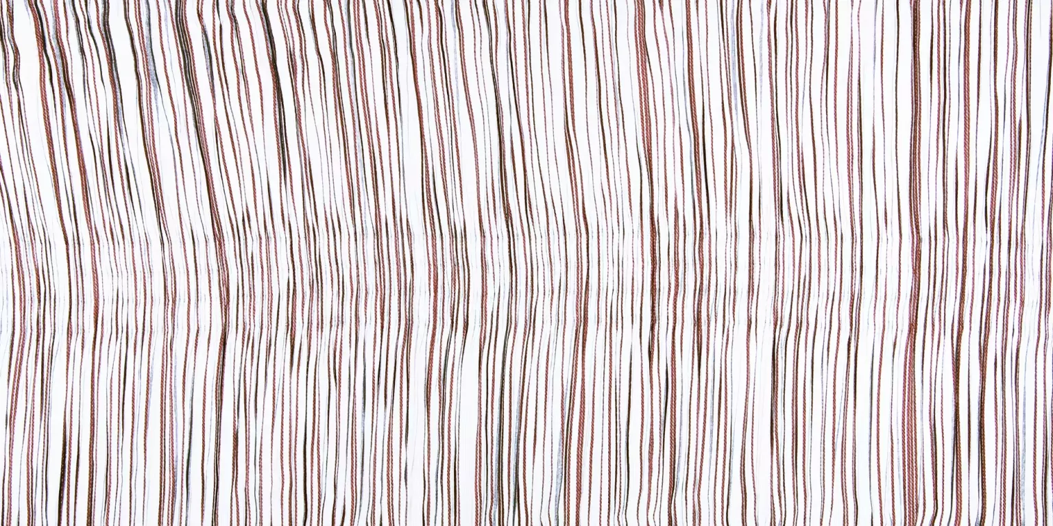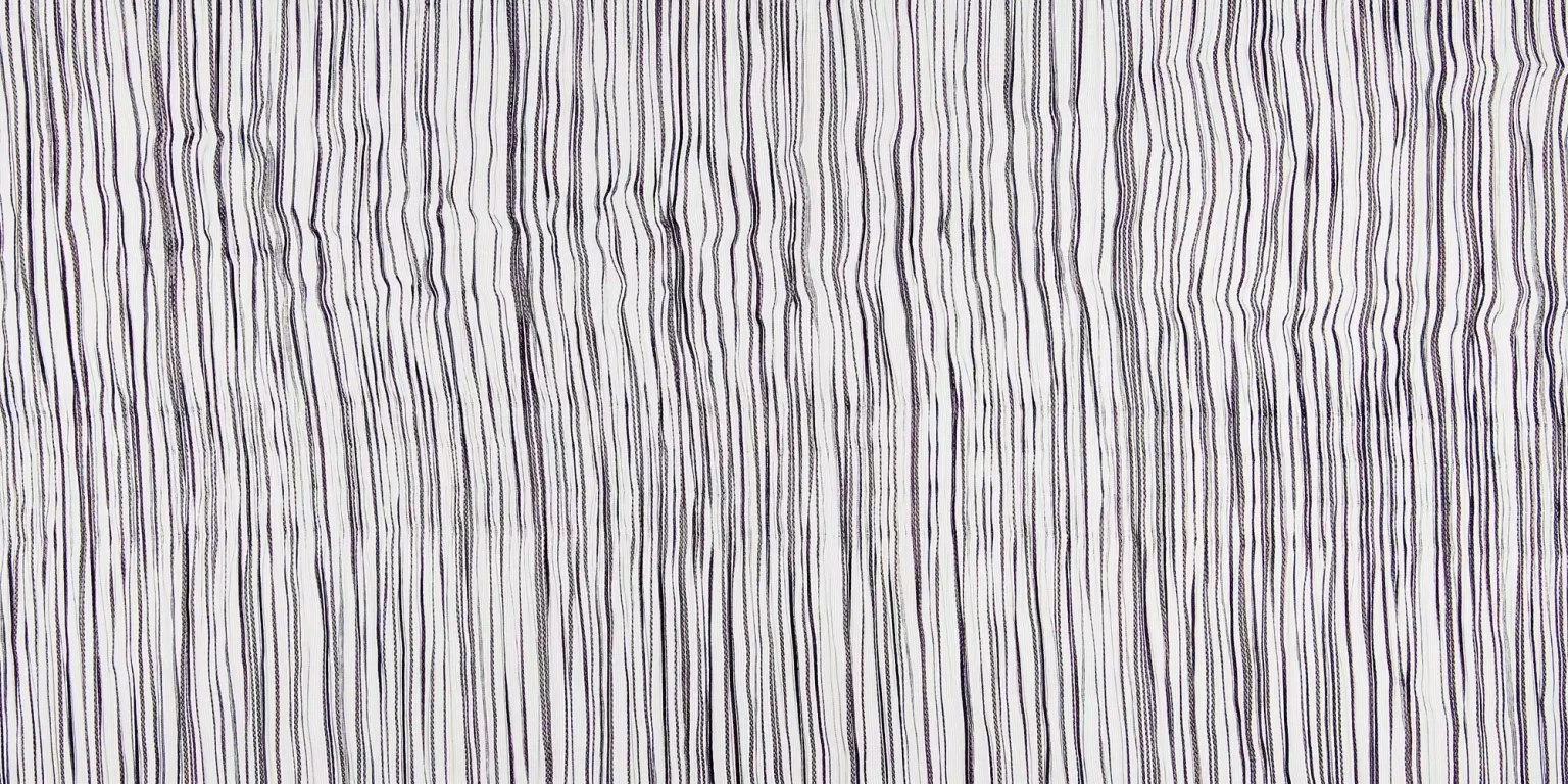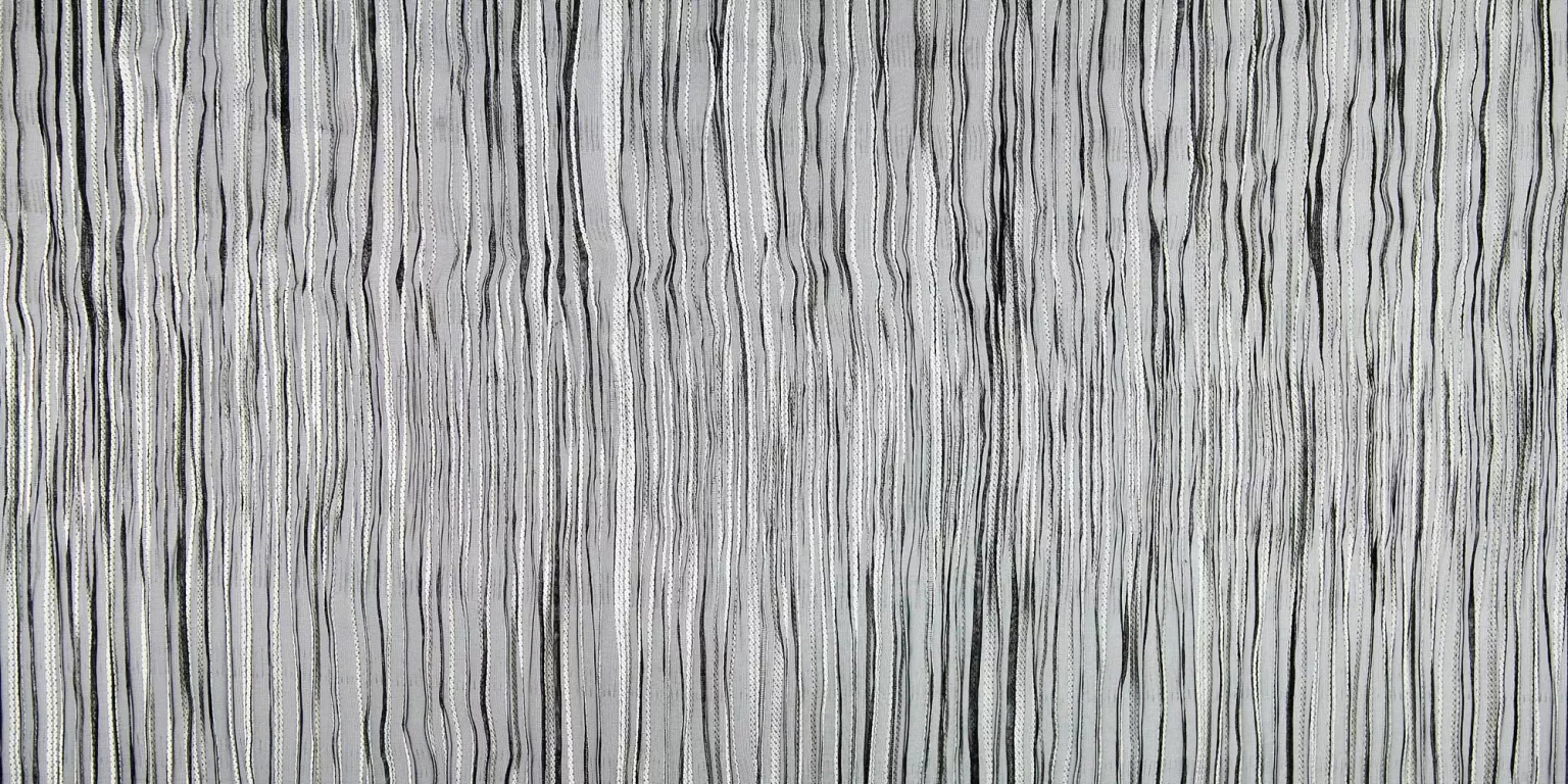 Vorhangstoff; Raffiniertes, fein gestreiftes Gewebe in Trevira CS. Die Längs-Plissierung und Quer-Prägung erzeugen ein Dessin, das dreidimensional wirkt.