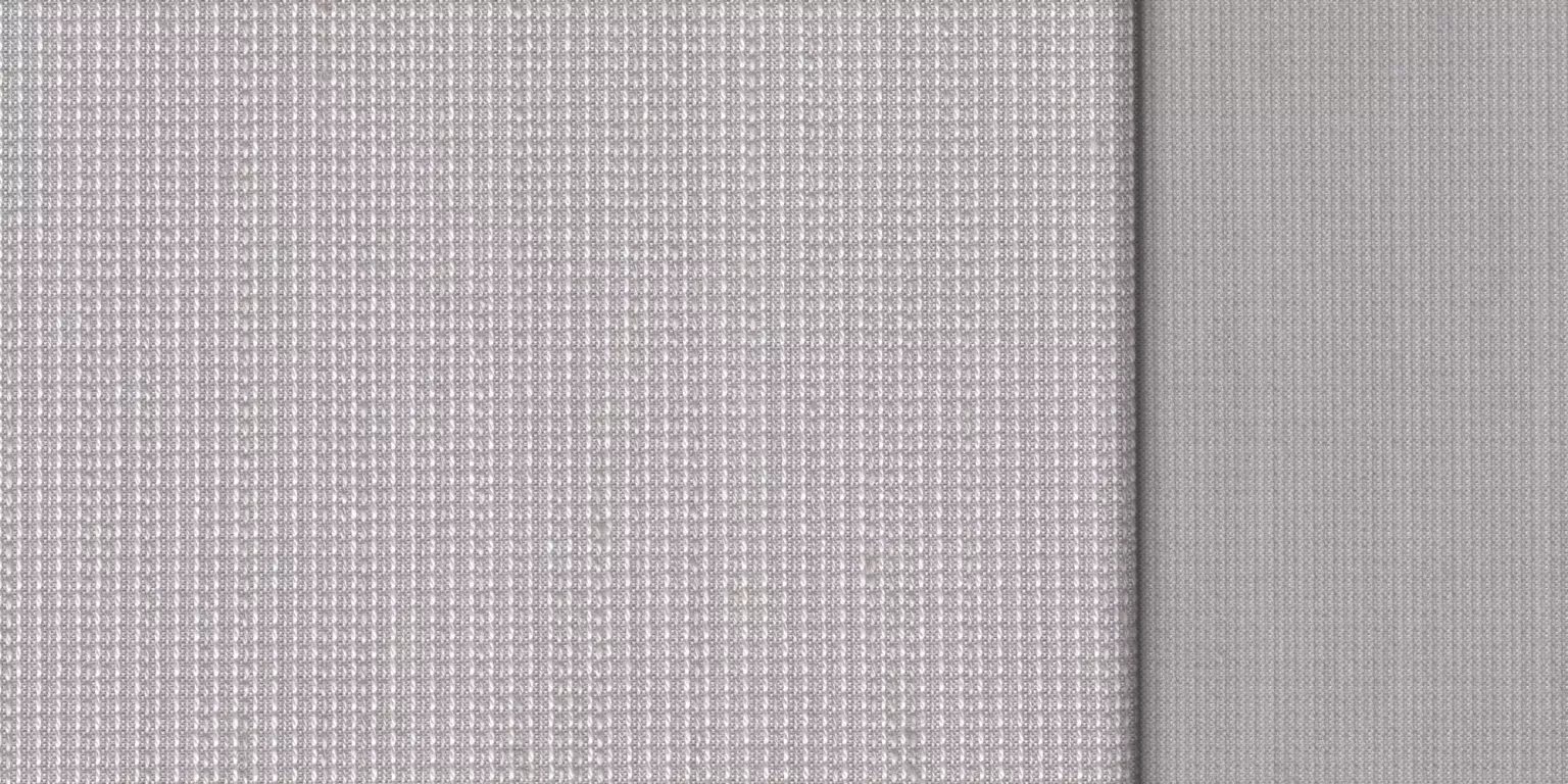 Acoustic partition curtain; different fabric sides allow for design variations - the two sides and colors enter into a harmonious dialogue. Despite maximum fabric density, which results in high sound absorption, a certain translucency is retained, which can be an advantage in the design of room zones in offices.
