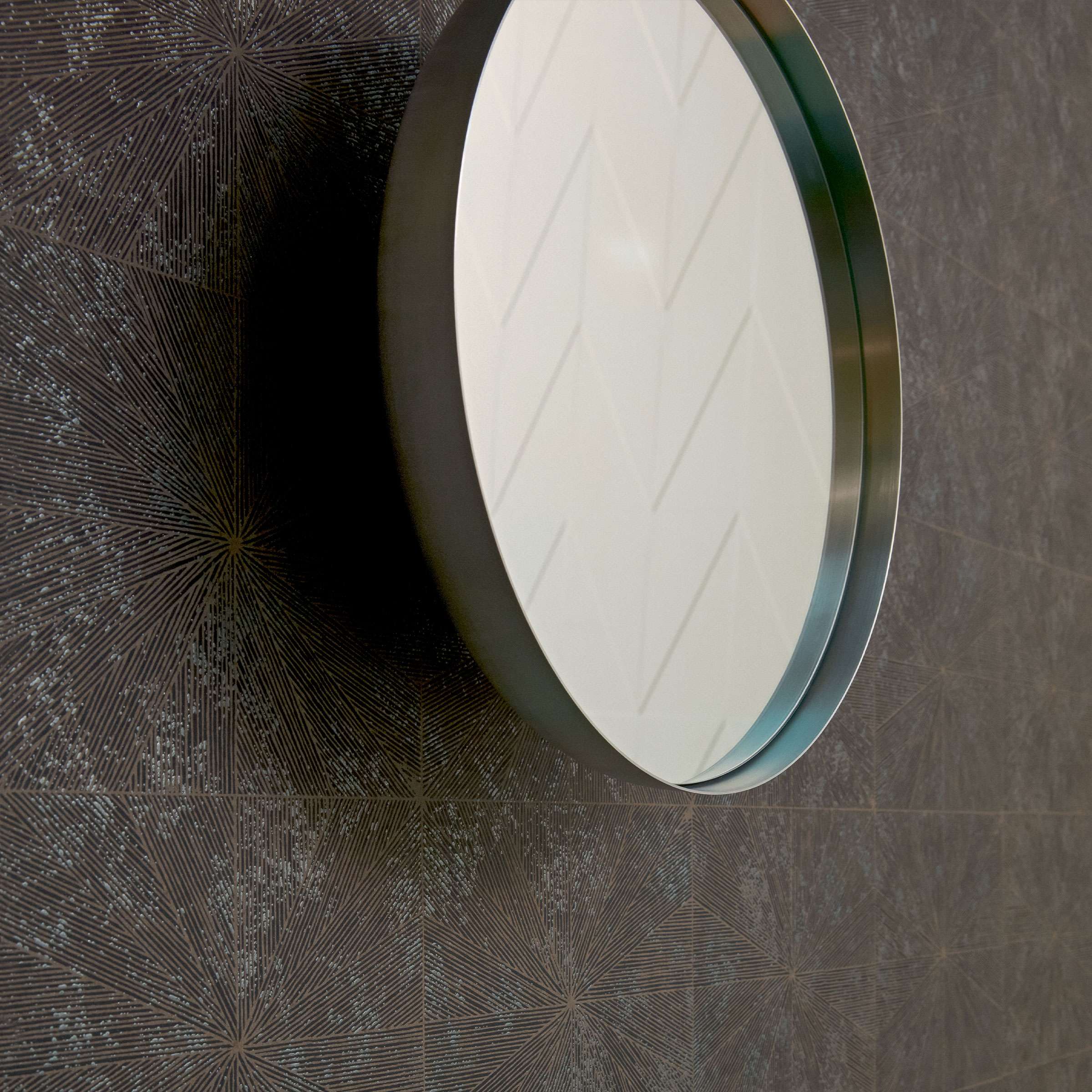 Stardust develops a fine, almost textile-like depth through the delicate embossing, which looks like a delicate grid structure of light and shadow. The surface is reminiscent of stardust, gently interwoven with graphic lines - a composition that reveals a shimmering glow and subtle elegance depending on the angle of view. The shimmering metallic background is never obtrusive, but supports the relief-like ornaments subtly and stylishly