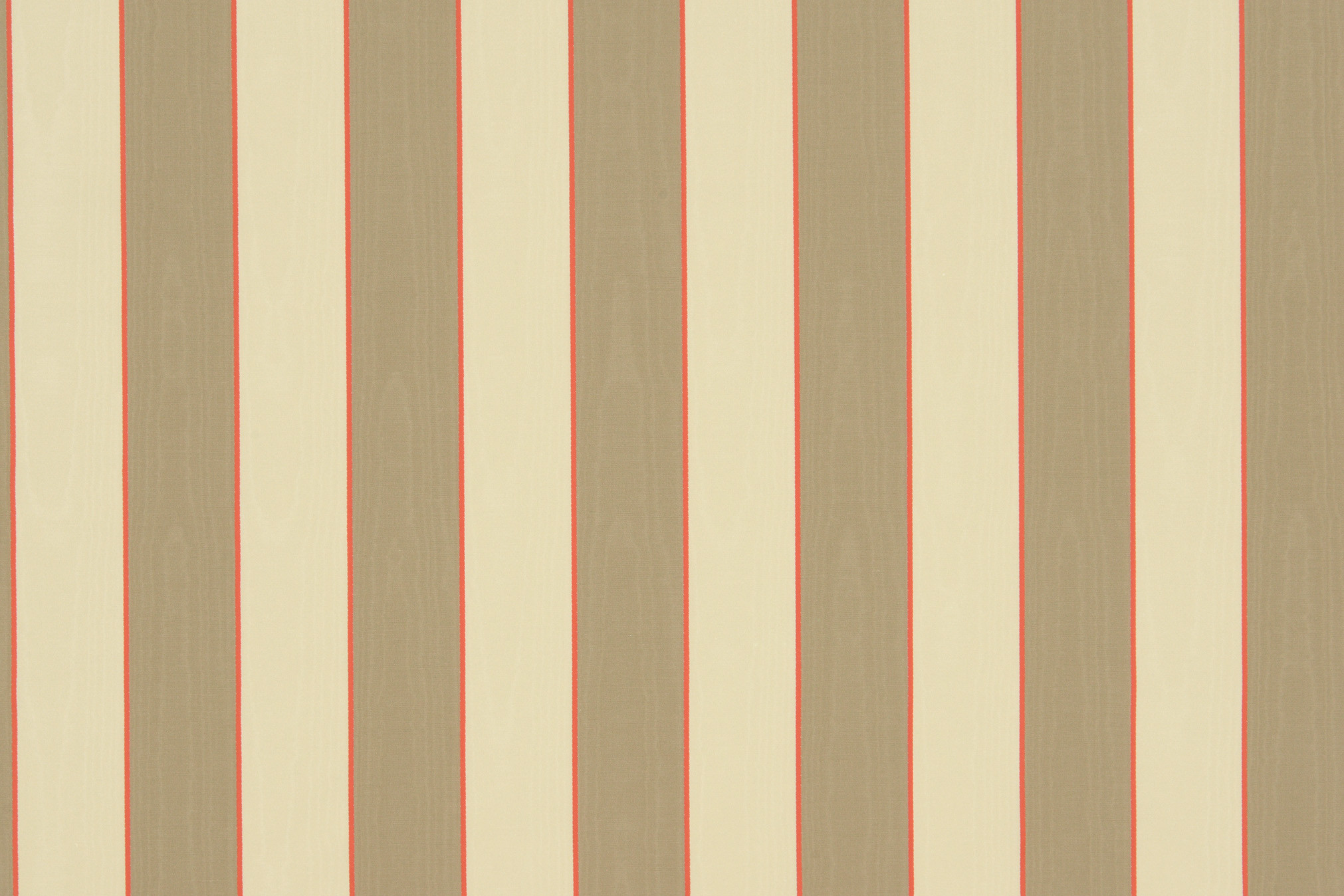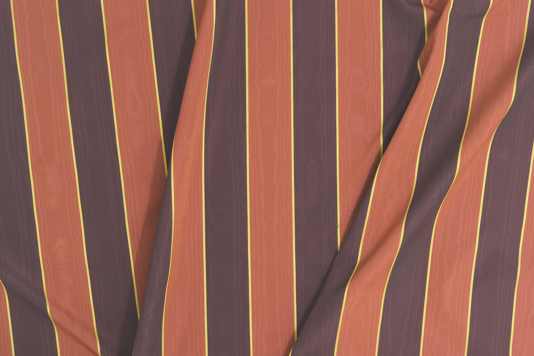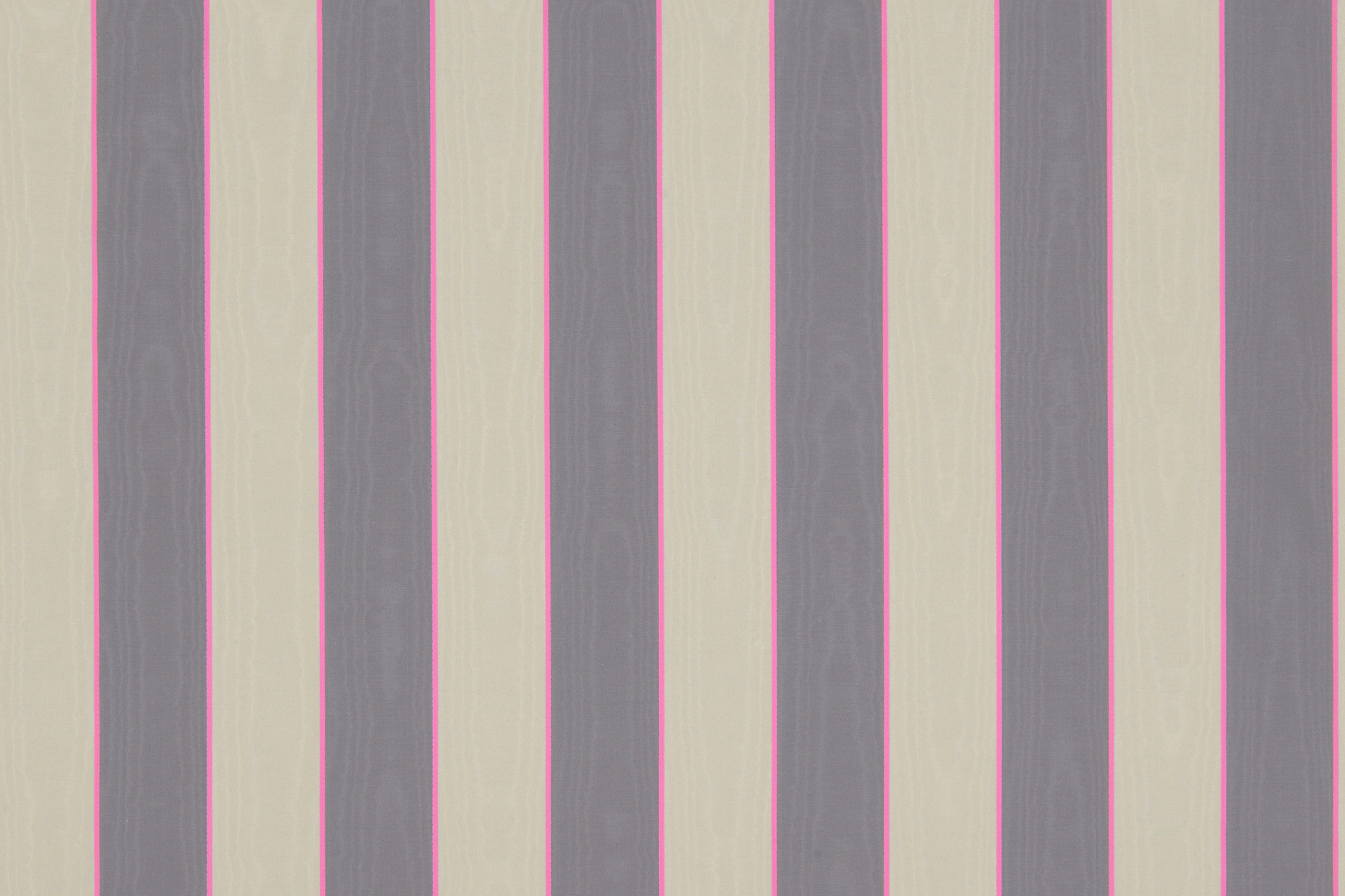 Adewisi ist ein eleganter Moiré in Trevira CS, der farblich auf den Uni Athenais abgestimmt ist und bei dem jeder Streifen sein eigenes Moiré-Design hat. Der dekorative Blockstreifen zeigt dabei das grosse Können eines Handwerkbetriebs, der als einer der letzten historischen Manufakturen noch immer auf alten Maschinen produziert. Die wasserzeichenartige Maserung eines echten Moirés entsteht, indem Stoffbahnen mit einem Kamm vorbehandelt und unter hohem Druck auf einem Walzenkalander laufen gelassen werden. Die besondere Raffinesse von Christian Fischbachers Adewisi ist, dass jeder Streifen sein eigenes Moiré-Design hat. Hierfür hat der italienische Hersteller einen speziellen Kamm entwickelt.