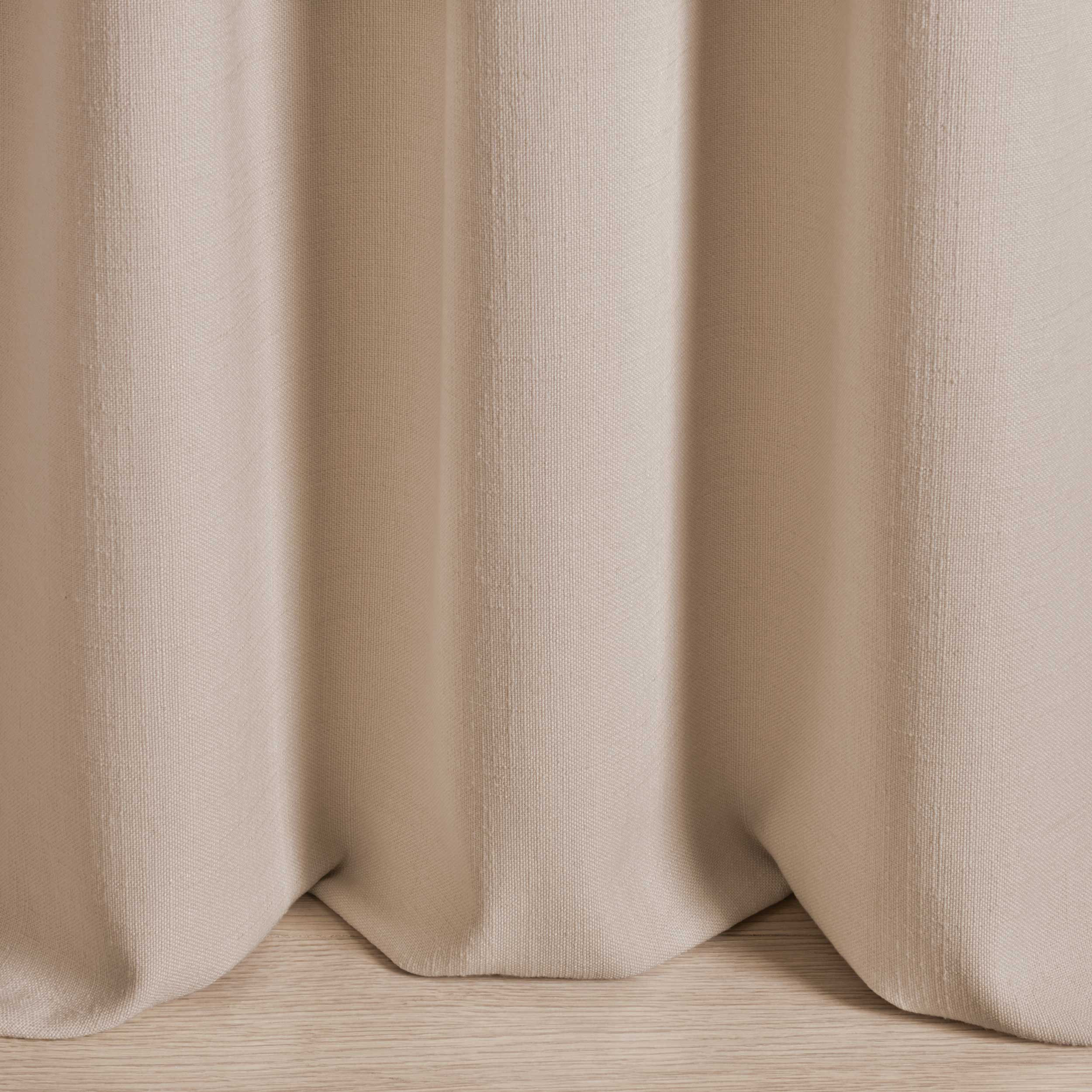 Sehr natürlich wirkender, leinenartiger Vorhangstoff in FR Qualität. Die Oberfläche der Leinwandbindung ist dank der natürlich wirkenden Verdickung des Garnes angenehm strukturiert.