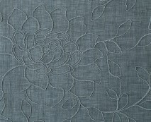 Eine florale Soutache- oder auch Besatz-Stickerei aus Blüten und Blättern in verschiedenen Schattierungen breitet sich in einer Bordüre über den unteren Abschnitt von BAGNOREGIO aus. Diese setzt sich in einem aufwendigen Rankenmuster über die gesamte Höhe des Leinen-Polyester-Gewebes, das in der Stonewashed-Technik gearbeitet ist, fort. Sechs Farbtöne, die sich harmonisierend im Grundgewebe und in der jeweiligen Stickerei wiederfinden, stehen bei BAGNOREGIO zur Auswahl.