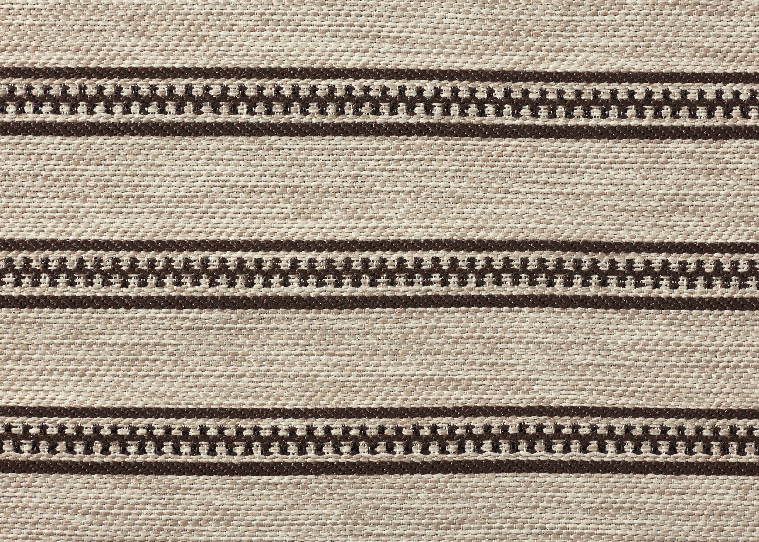 Die Originalbeschreibung von BRIZO FR lautet: „BRIZO FR ist ein schwer entflammbarer, garngefärbter Outdoor-Polsterstoff mit einem regelmäßigen Streifenmuster und einem geometrischen Motiv in der Mitte. Hergestellt aus schwer entflammbarem Polypropylen und Polyester, besitzt er natürliche antibakterielle und schmutzabweisende Eigenschaften. 45.000 Martindale-Schweißzyklen. Erhältlich in 7 Farben.“